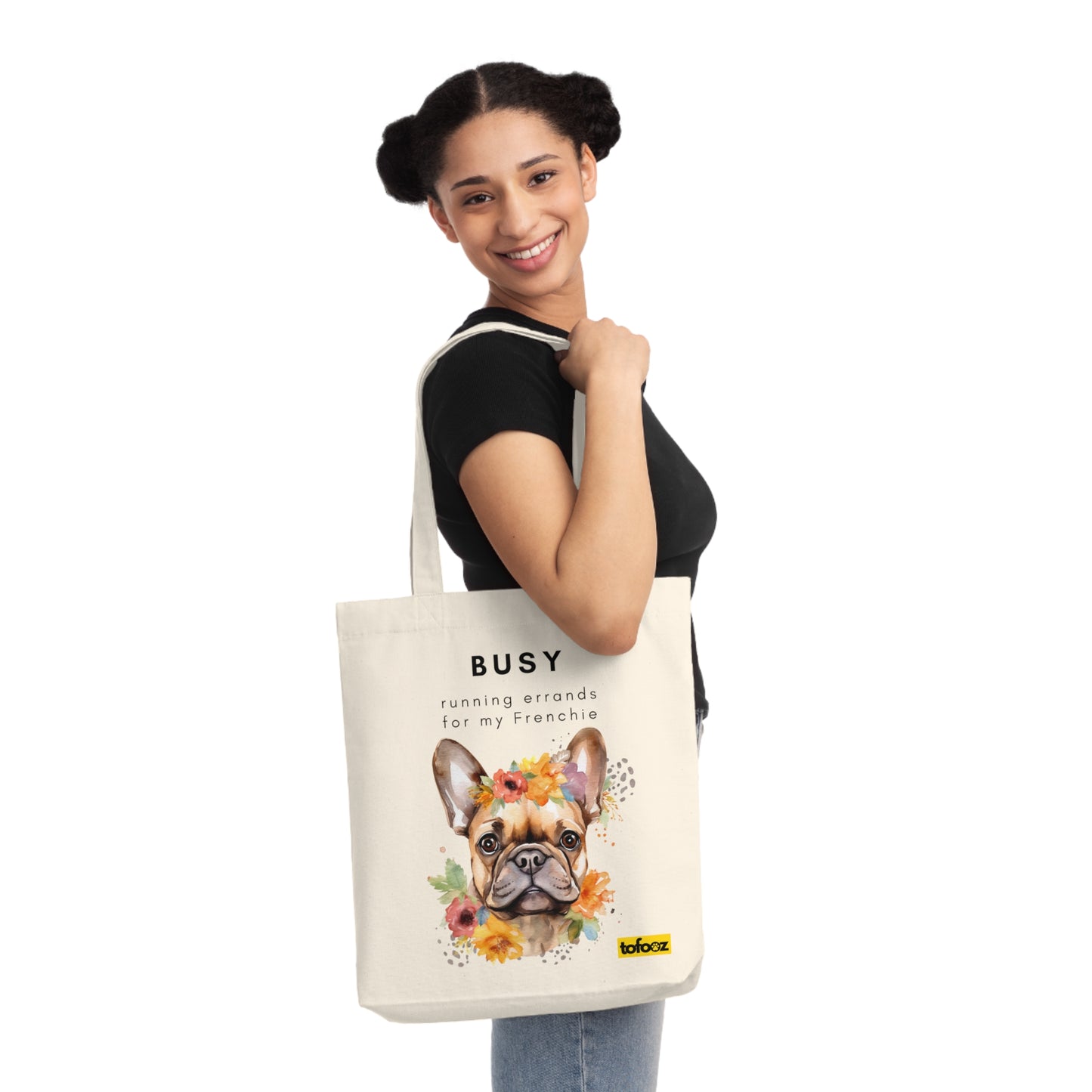 Busy Running Errands For My Frenchie Woven Tote Bag