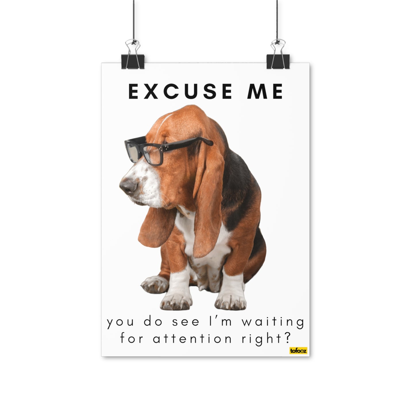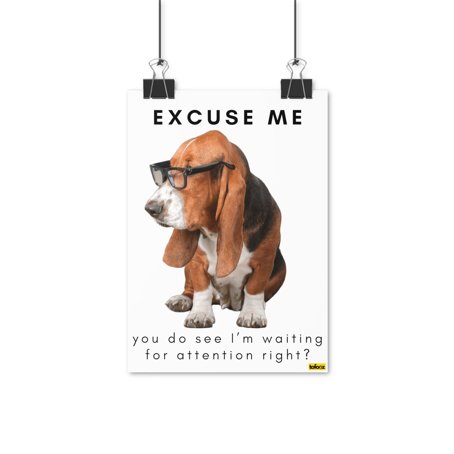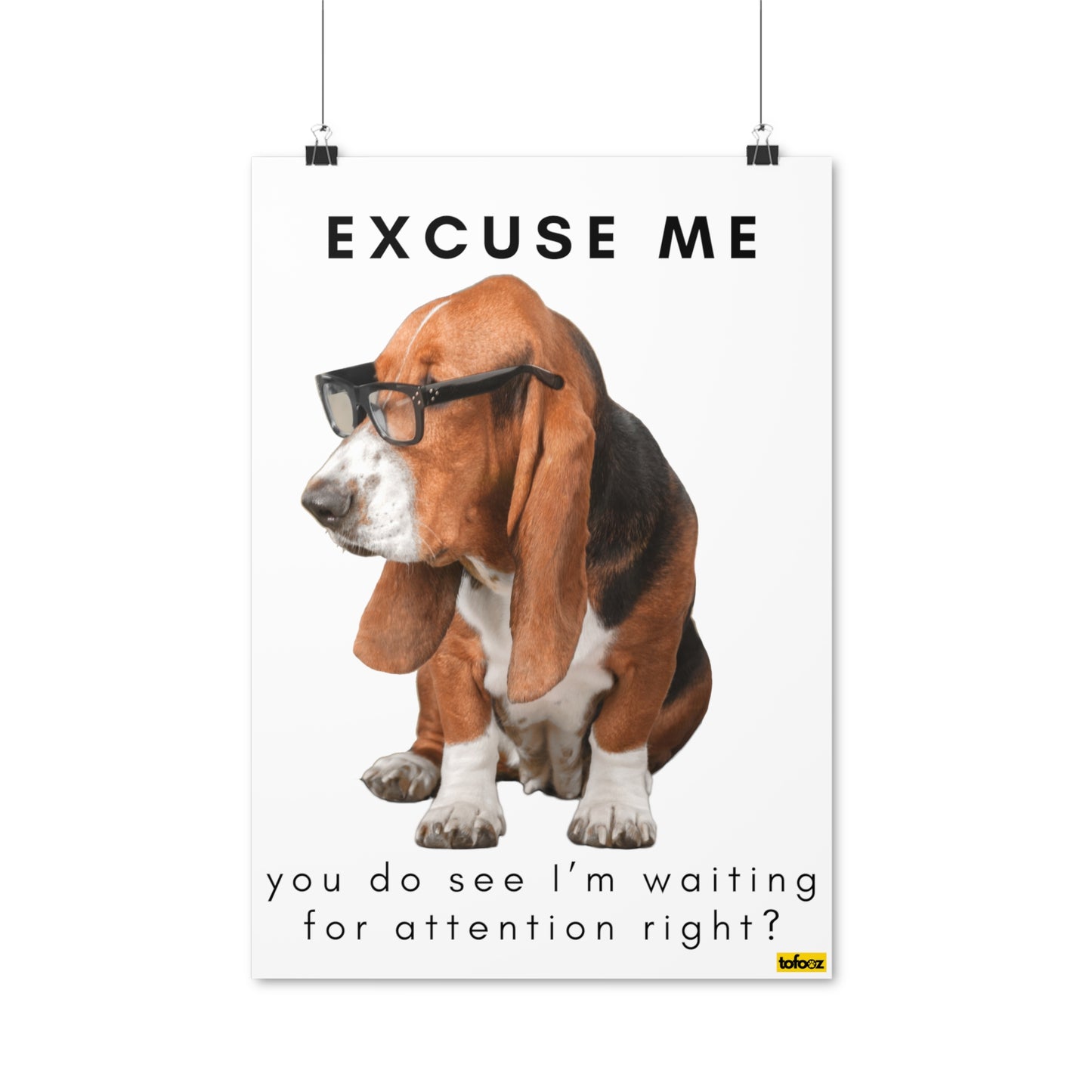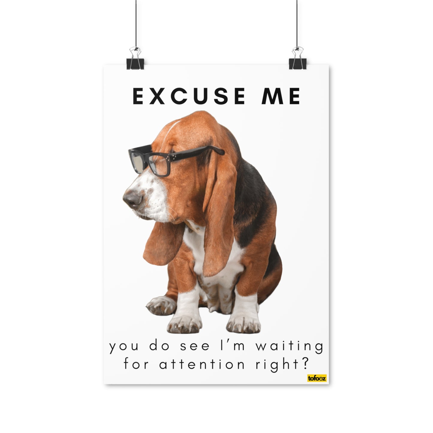 Excuse Me Attention Glasses Basset Hound Poster - Various Sizes