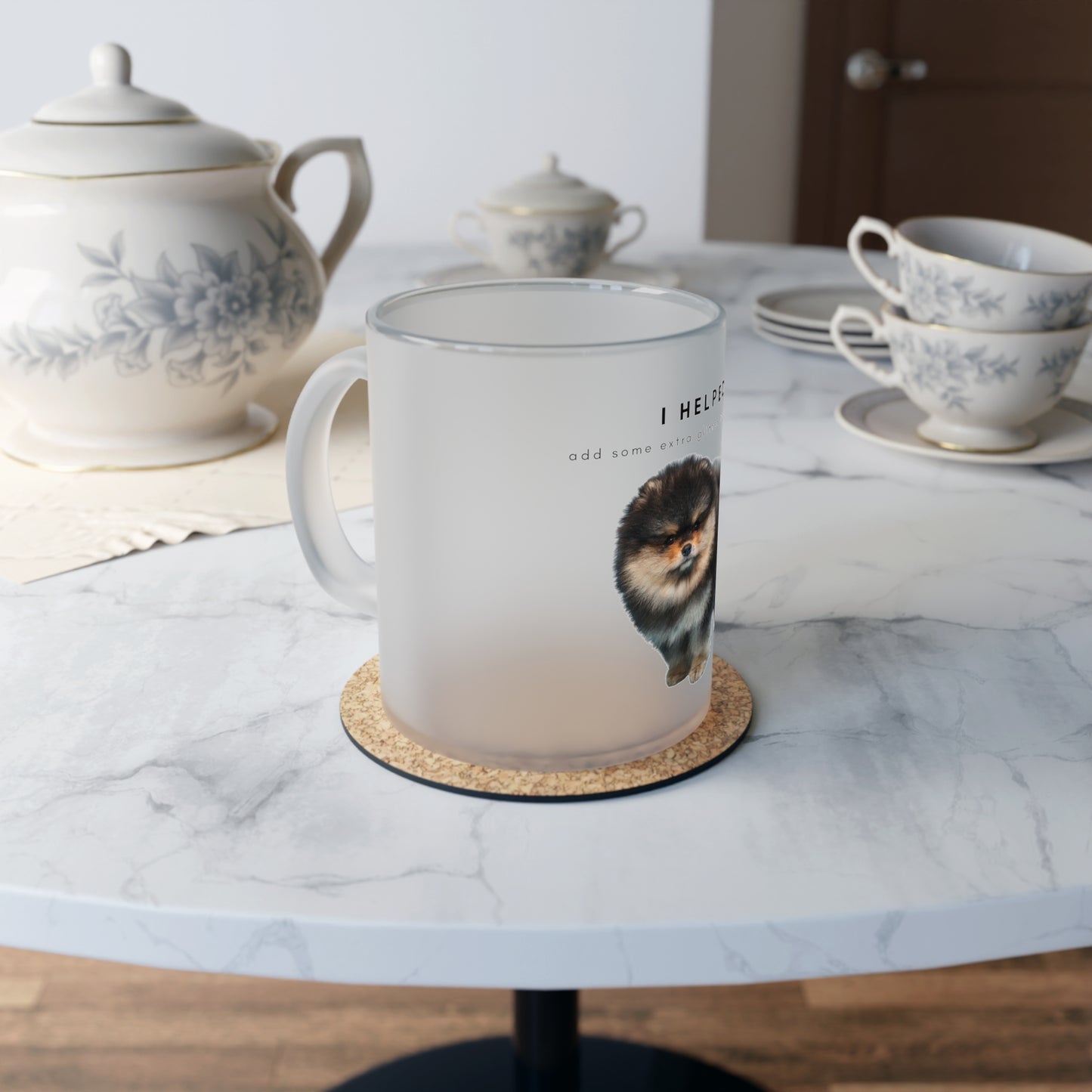 I Helped Add Glitter Black Tan Pomeranian Puppy - Frosted Glass Mug, 325ml