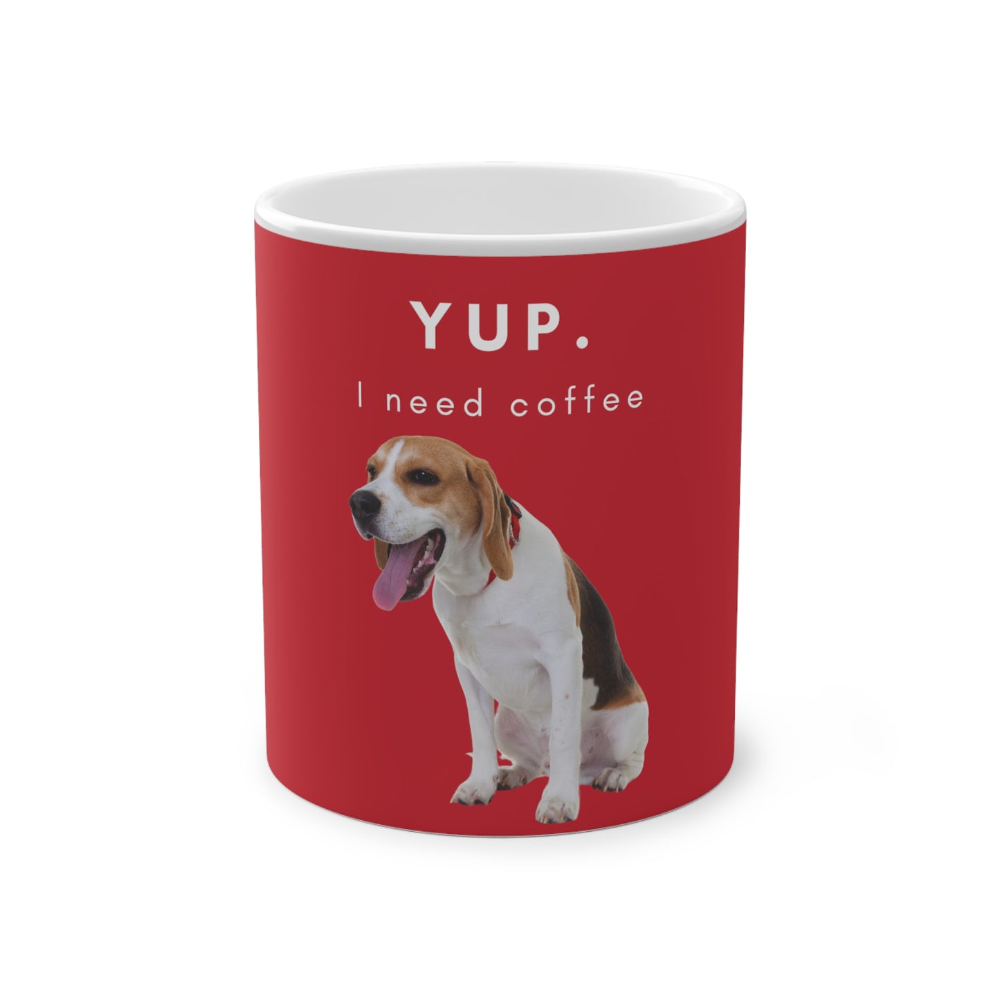 Yup I Need Coffee Adult Beagle Magic Mug, 325ml - Red