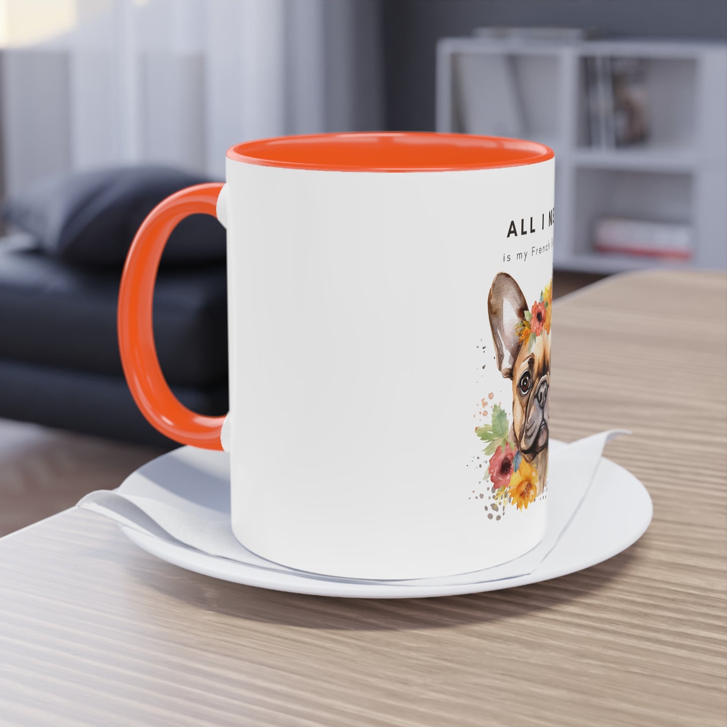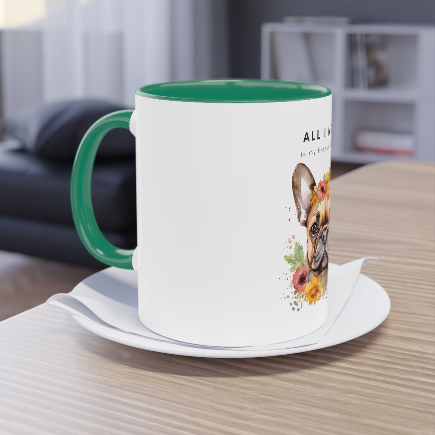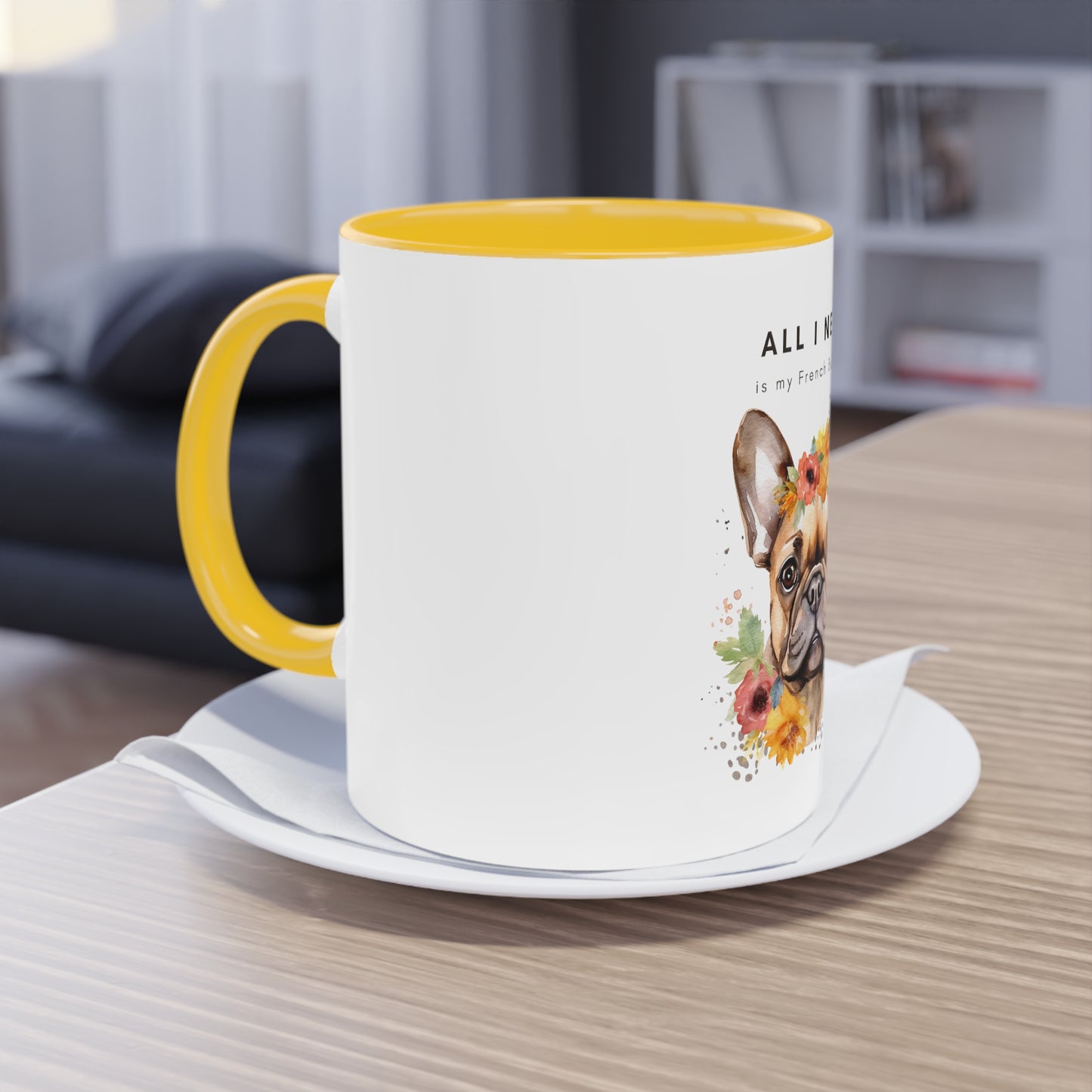 All I Need Is My French Bulldog Two-Tone Coffee Mug, 325ml - White