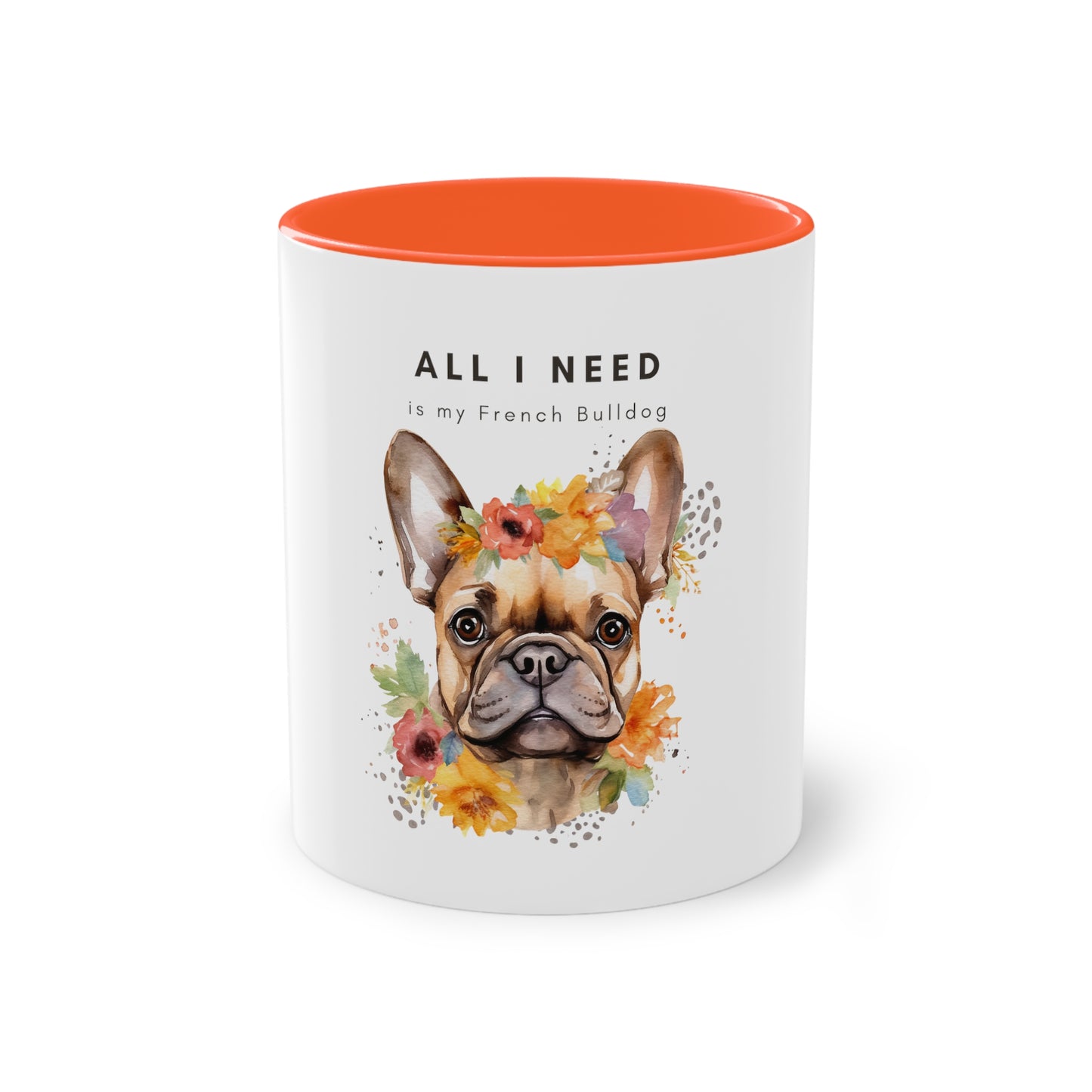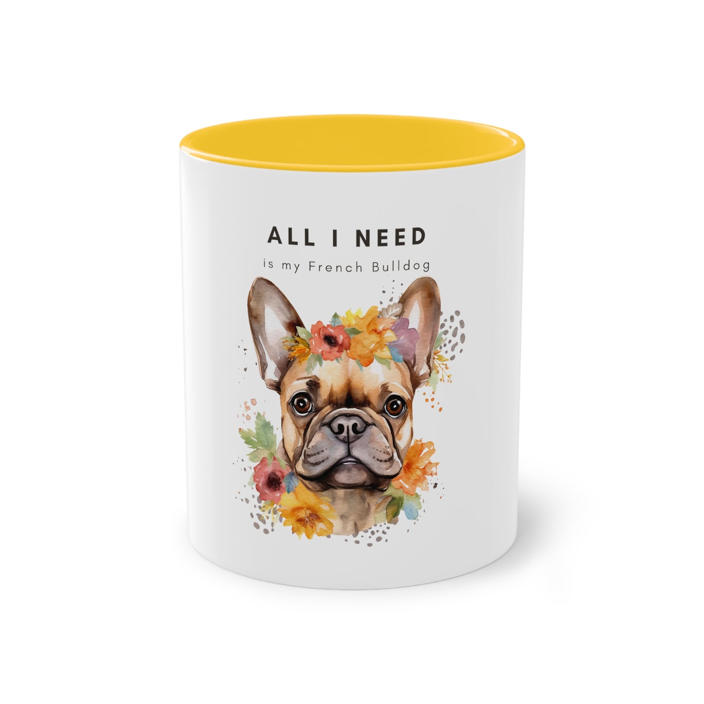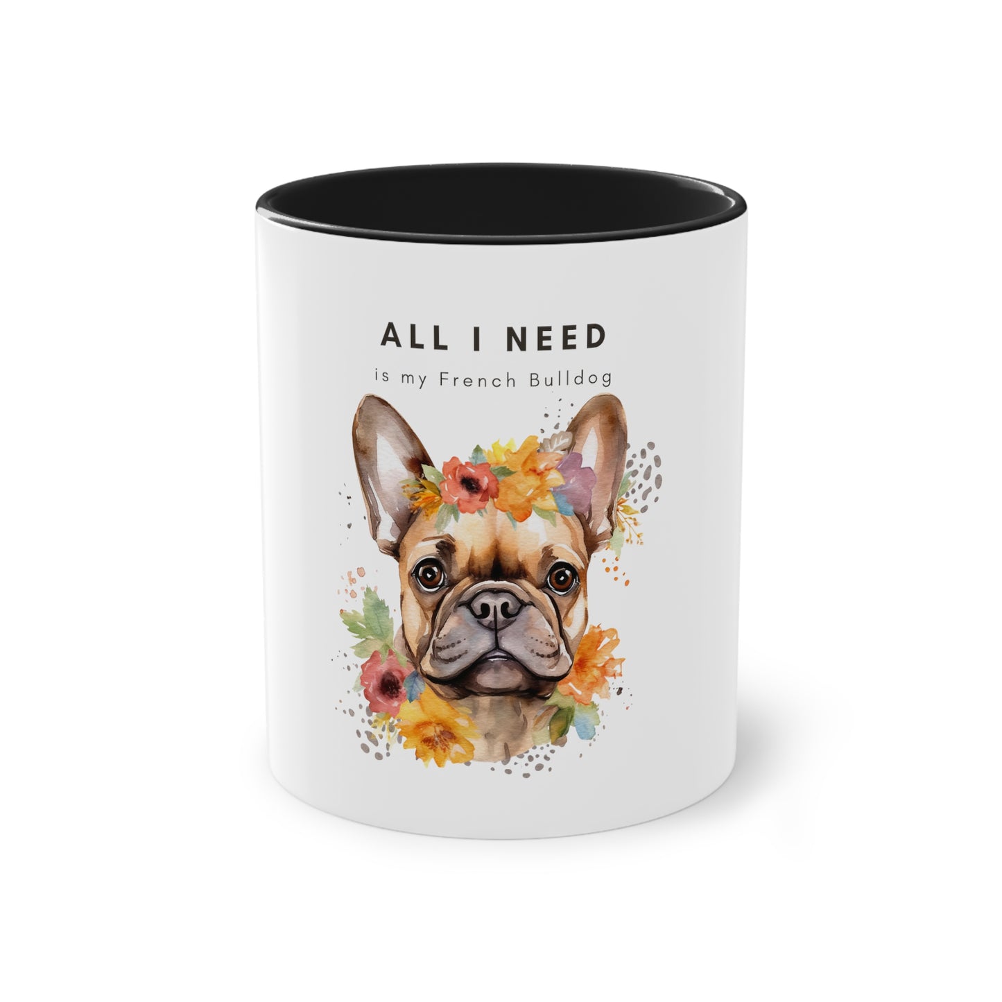 All I Need Is My French Bulldog Two-Tone Coffee Mug, 325ml - White