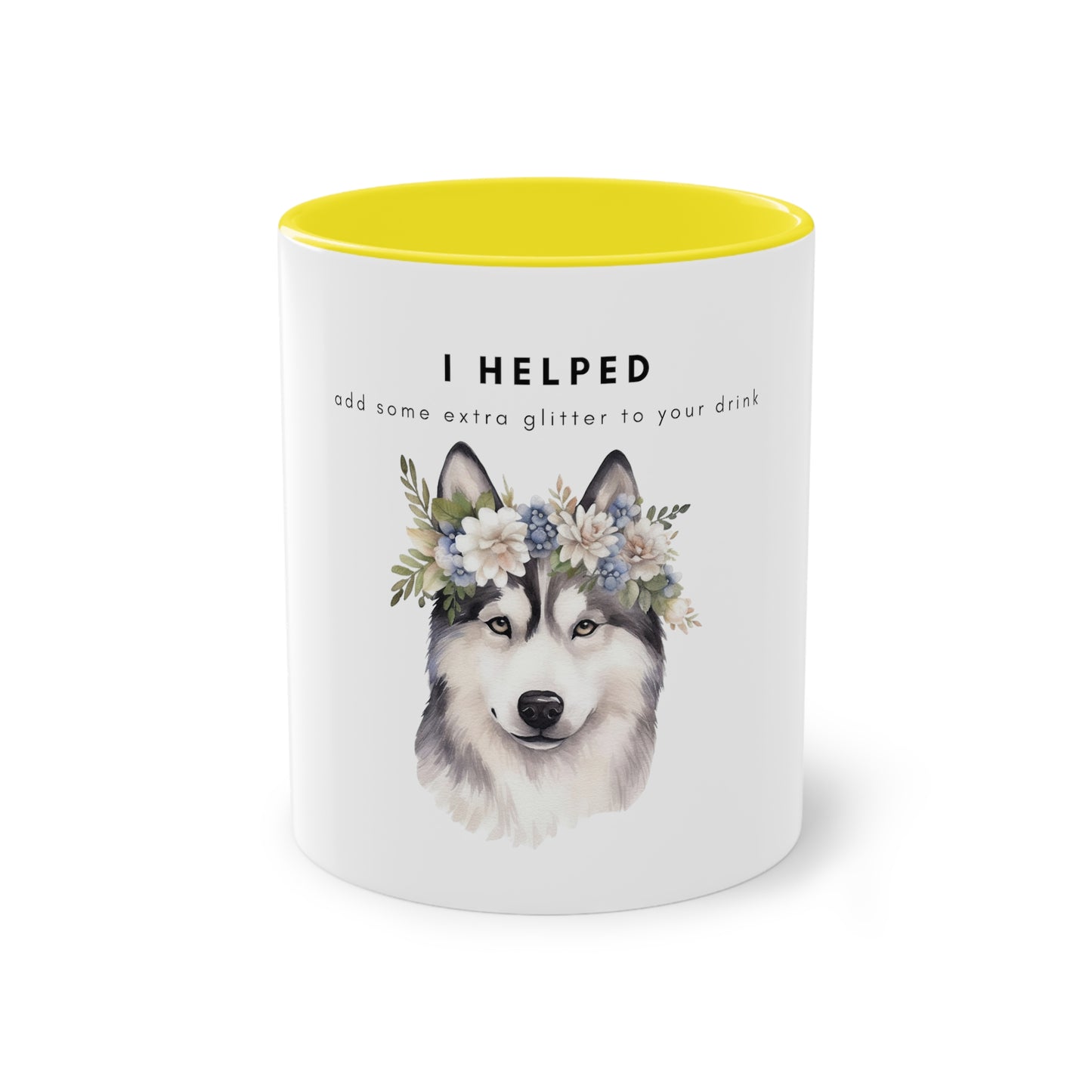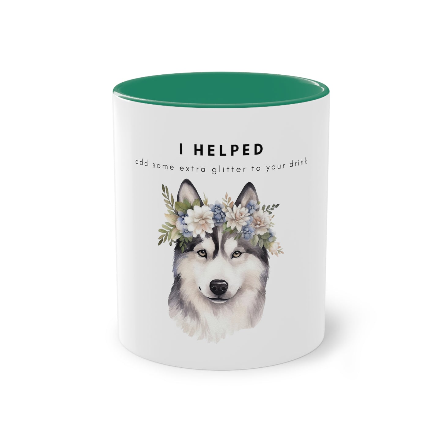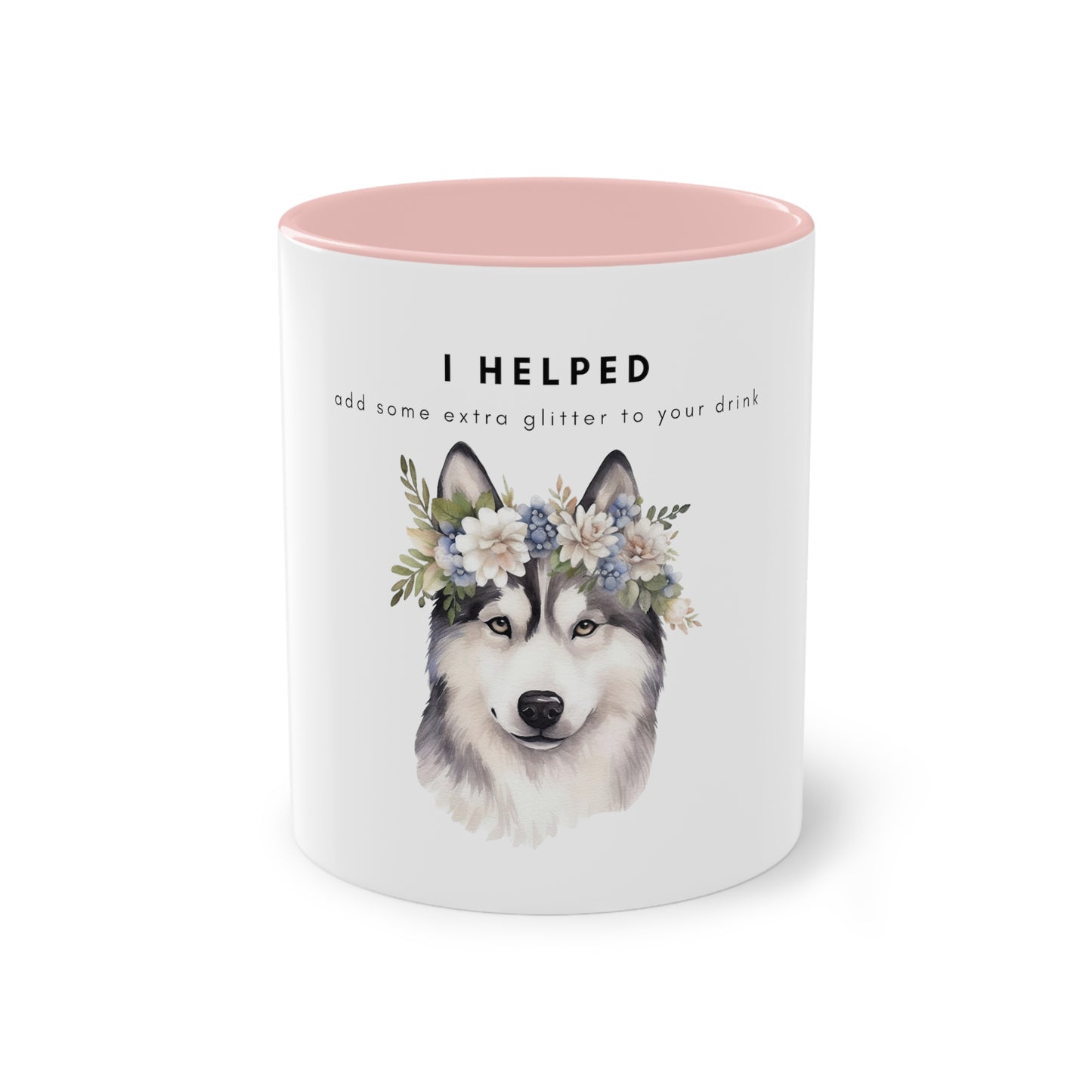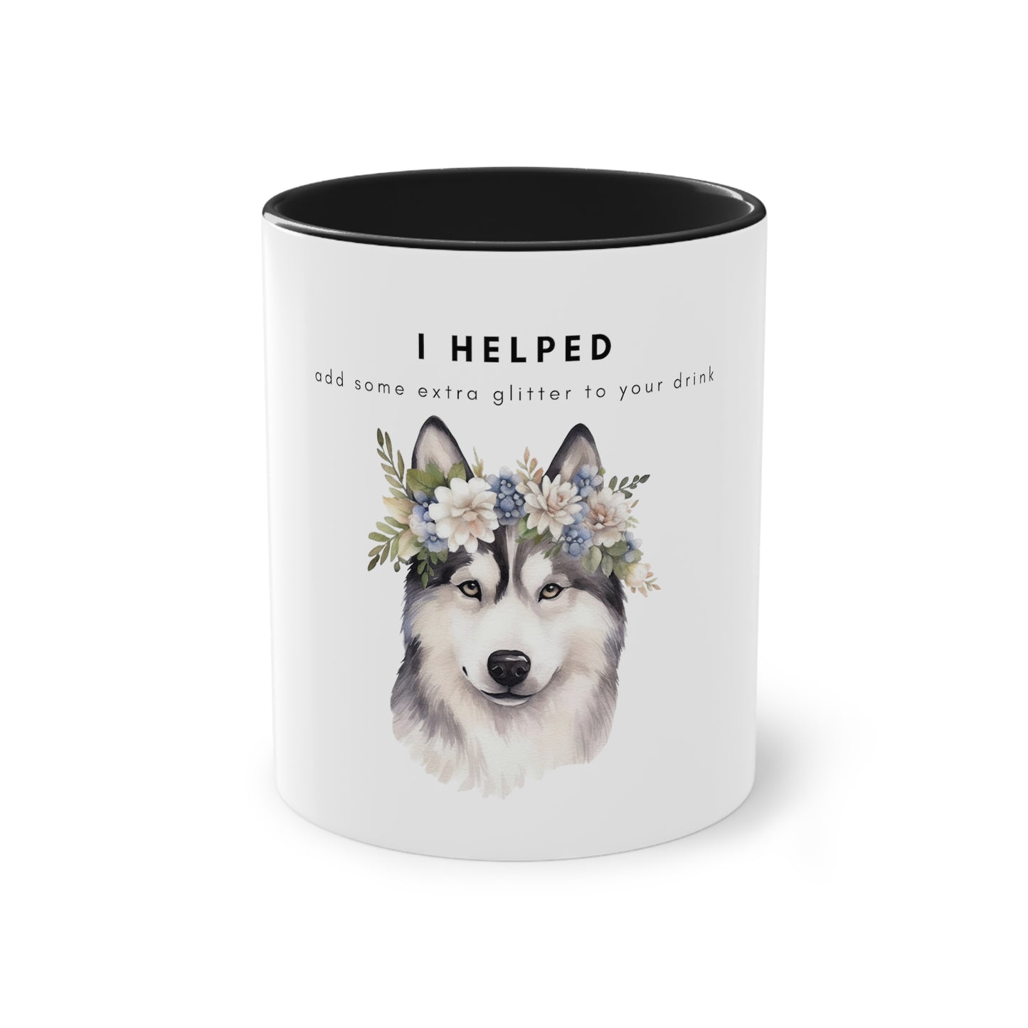 I Helped Add Glitter Husky Flowers Two-Tone Coffee Mug, 325ml - White