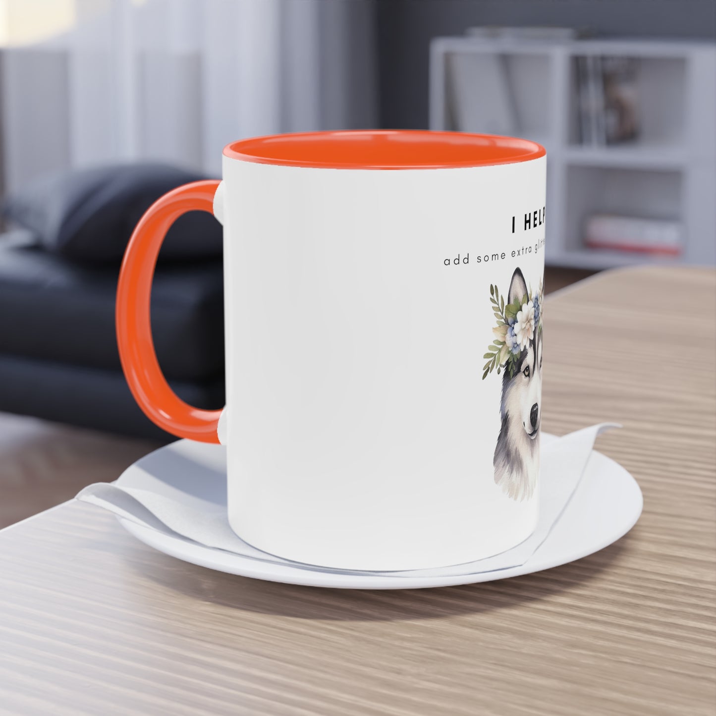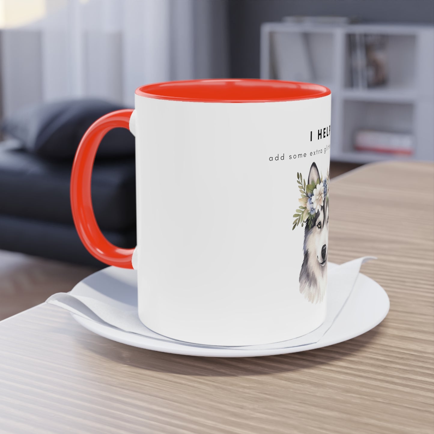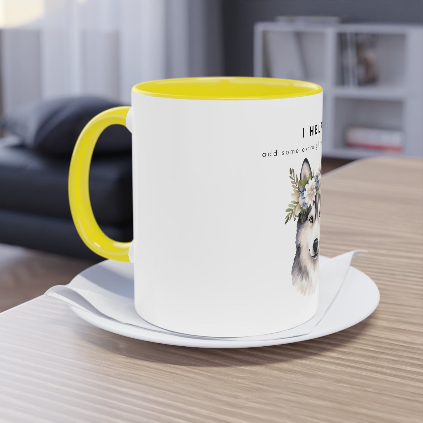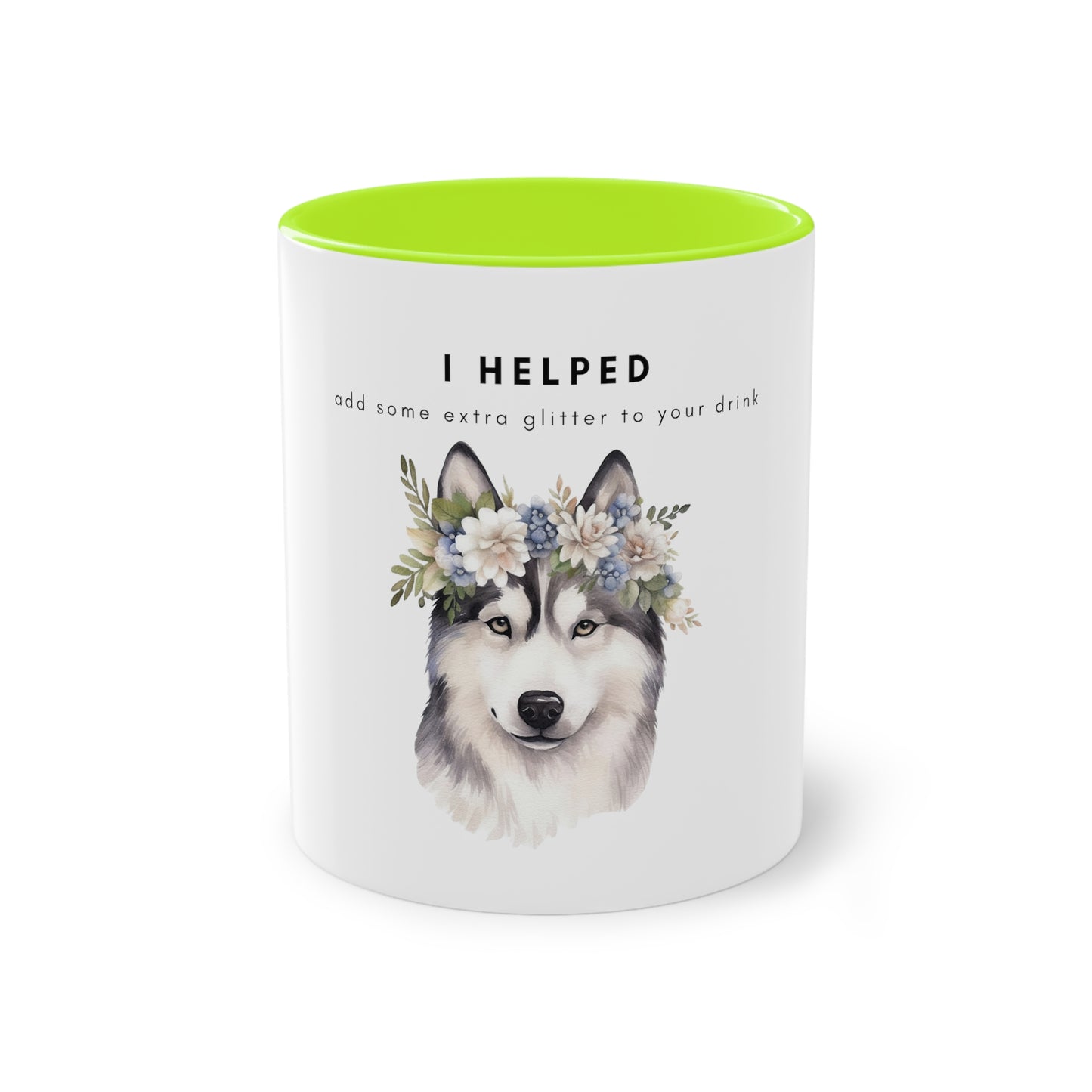 I Helped Add Glitter Husky Flowers Two-Tone Coffee Mug, 325ml - White
