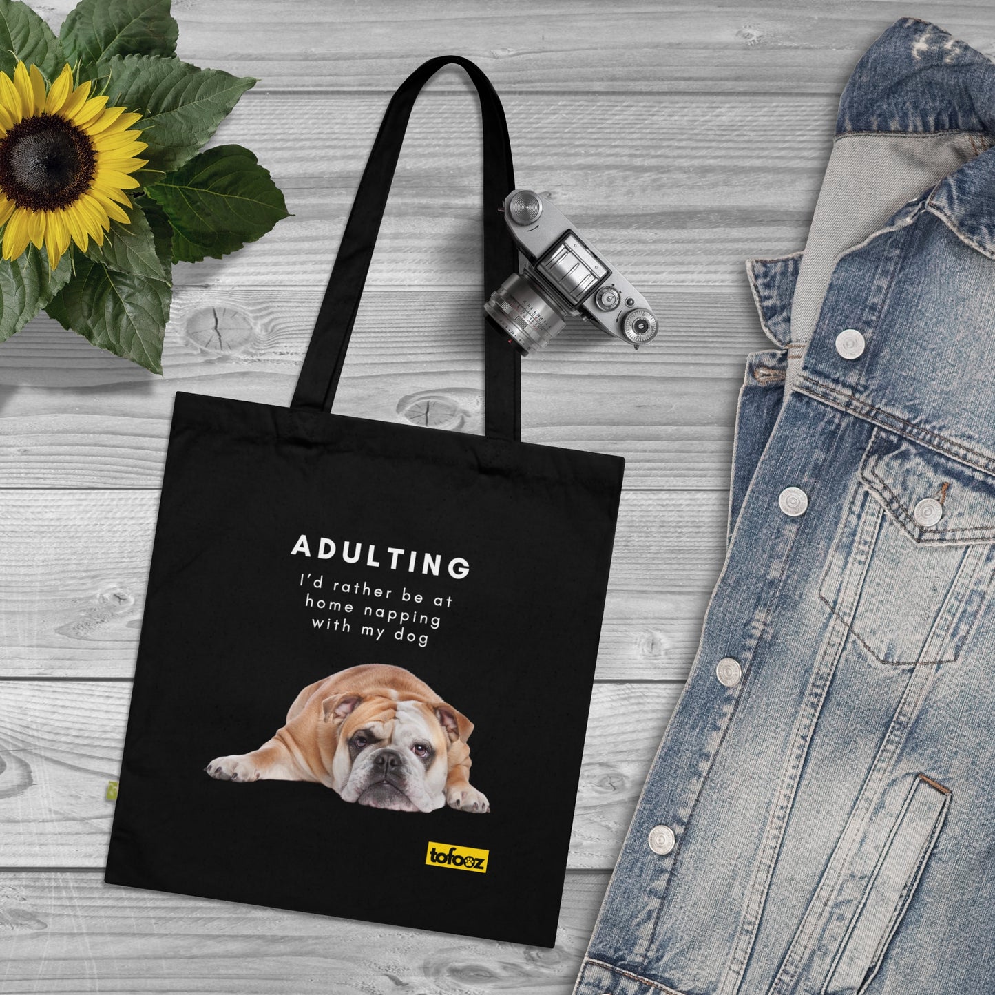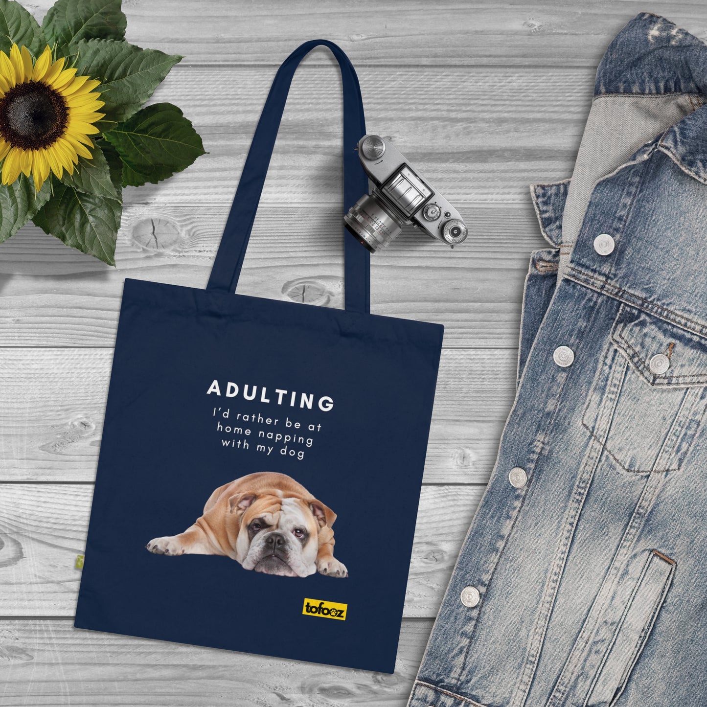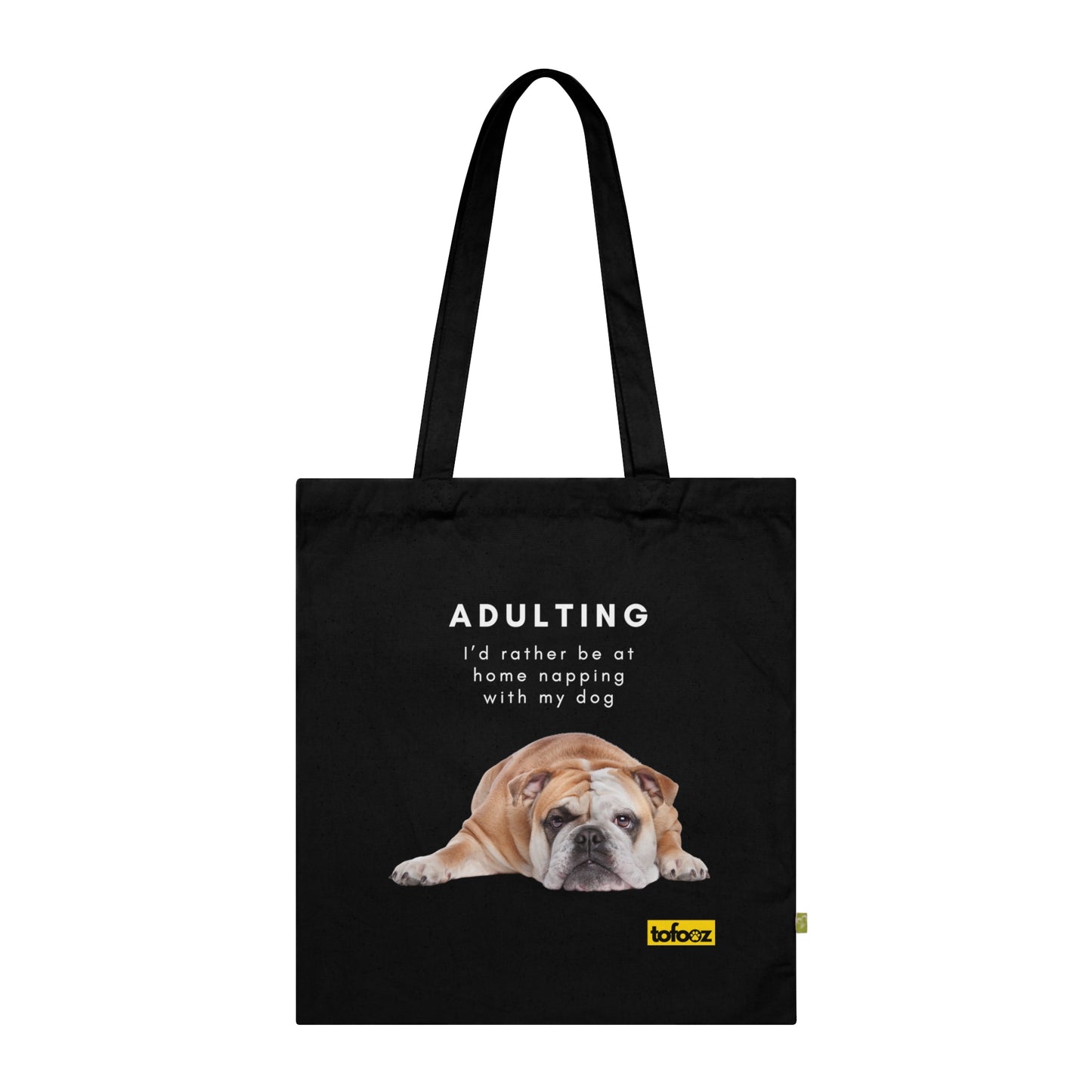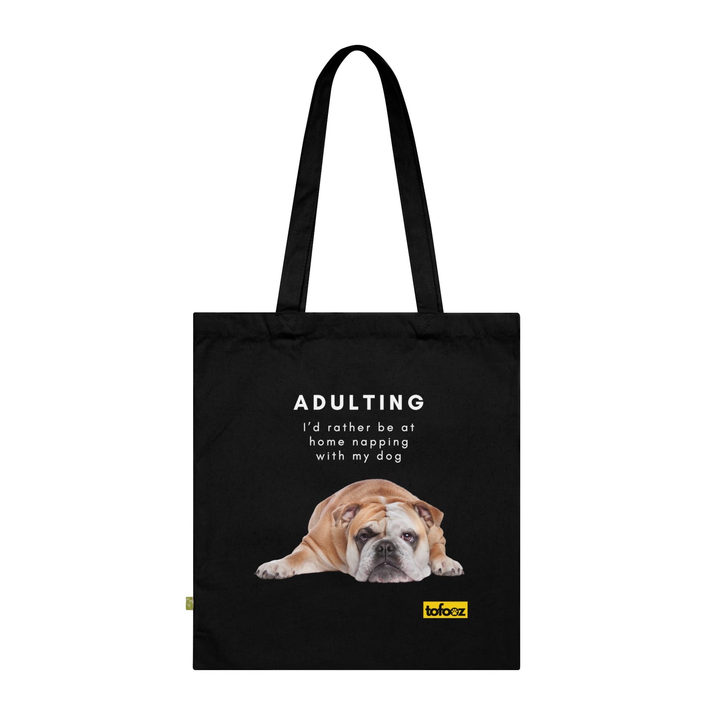 Adulting Rather Be Napping English Bulldog Organic Cotton Tote Bag