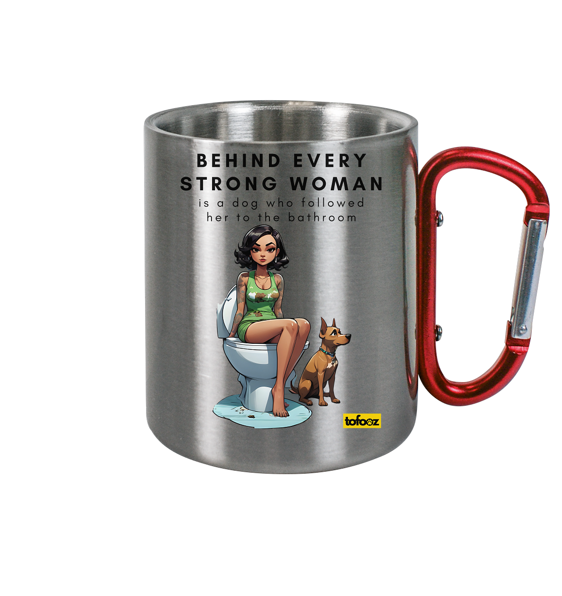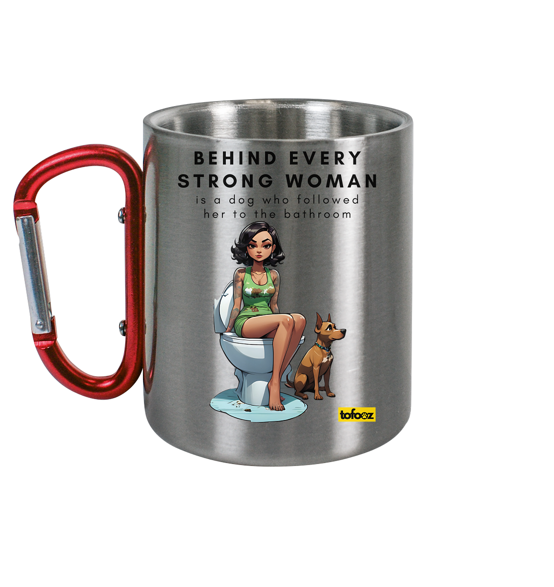 - Bruchfeste und rostfreie Edelstahltasse mit integriertem roten Karabiner
