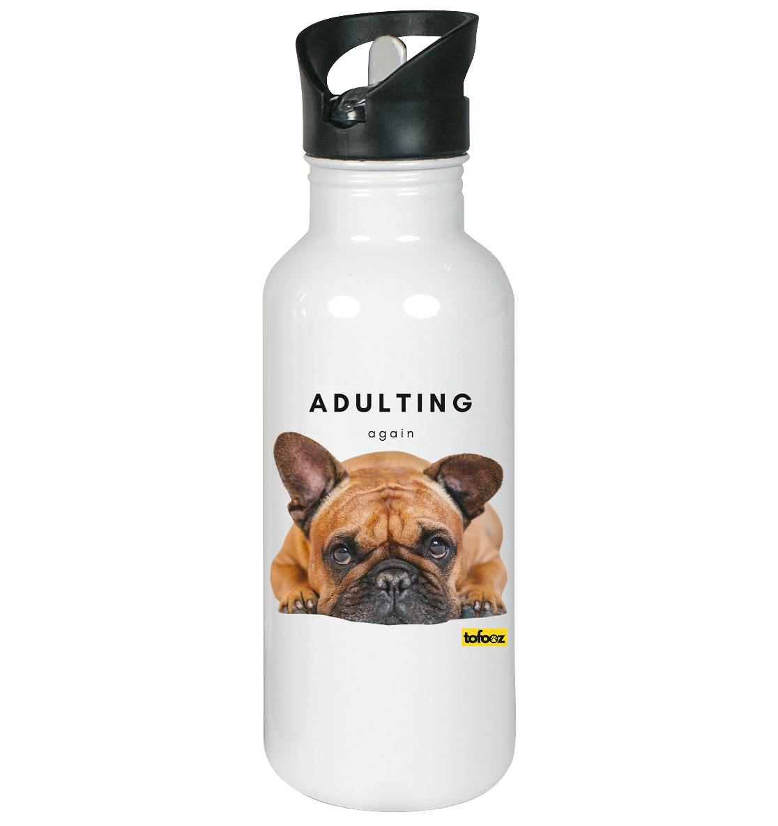 Introducing Tofooz-Designed latest collection: "Adulting Again" featuring a beloved French Bulldog! Embrace the durability and eco-friendliness of stainless steel while infusing your routine with boundless joy and positivity. Let our cute collection make you smile with every sip!