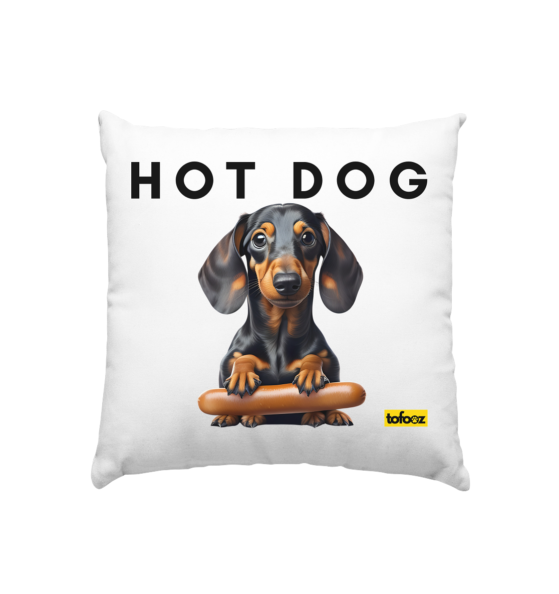 Hot Dog - Dachshund - White Cushion