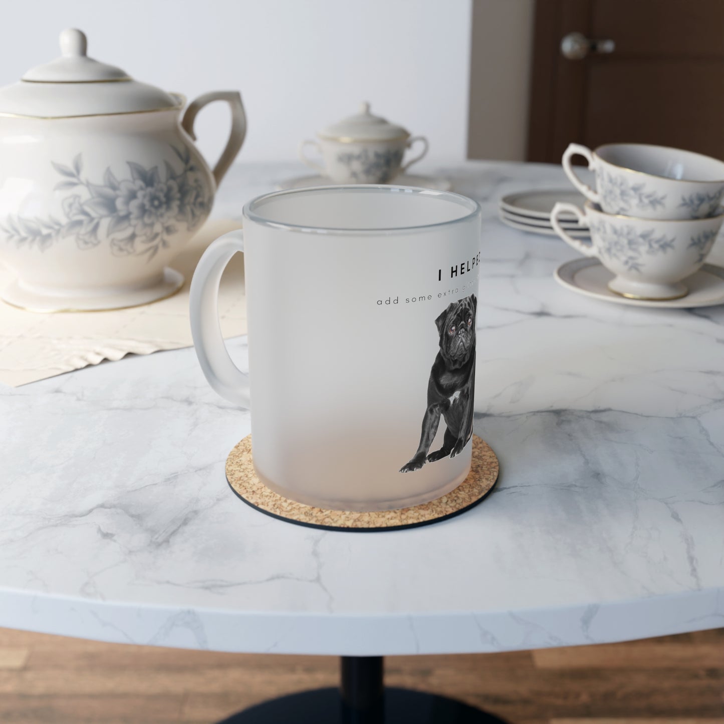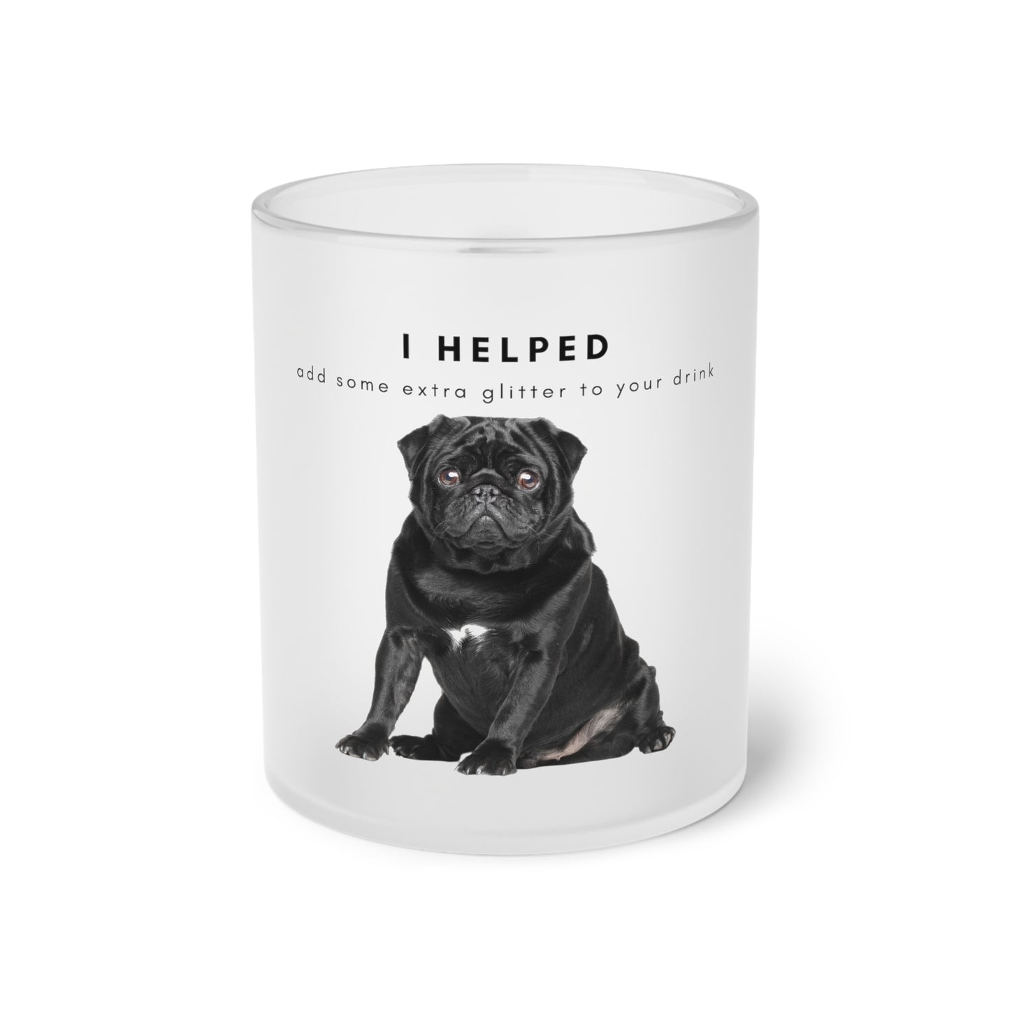 I Helped Add Glitter Black Pug - Frosted Glass Mug, 325ml