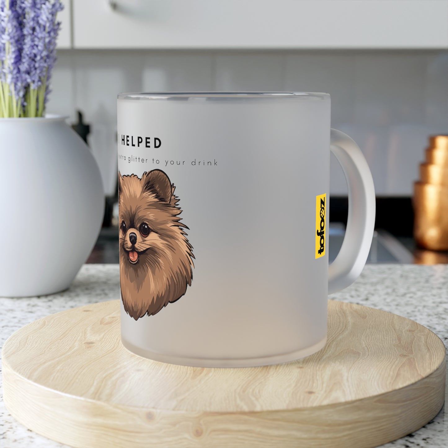 I Helped Add Glitter Brown Pomeranian - Frosted Glass Mug, 325ml