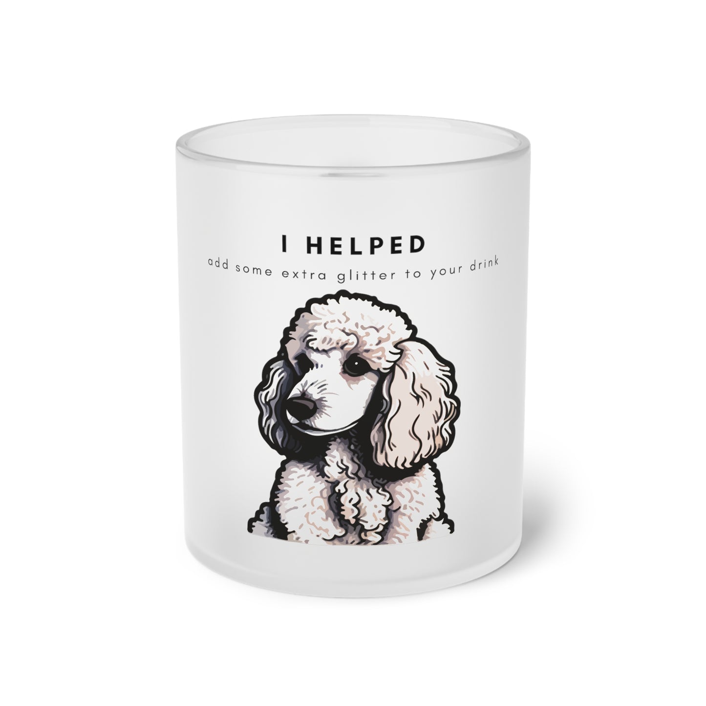 I Helped Add Glitter White Poodle Graphic - Frosted Glass Mug, 325ml