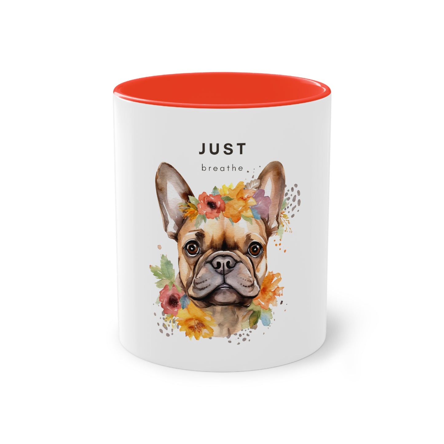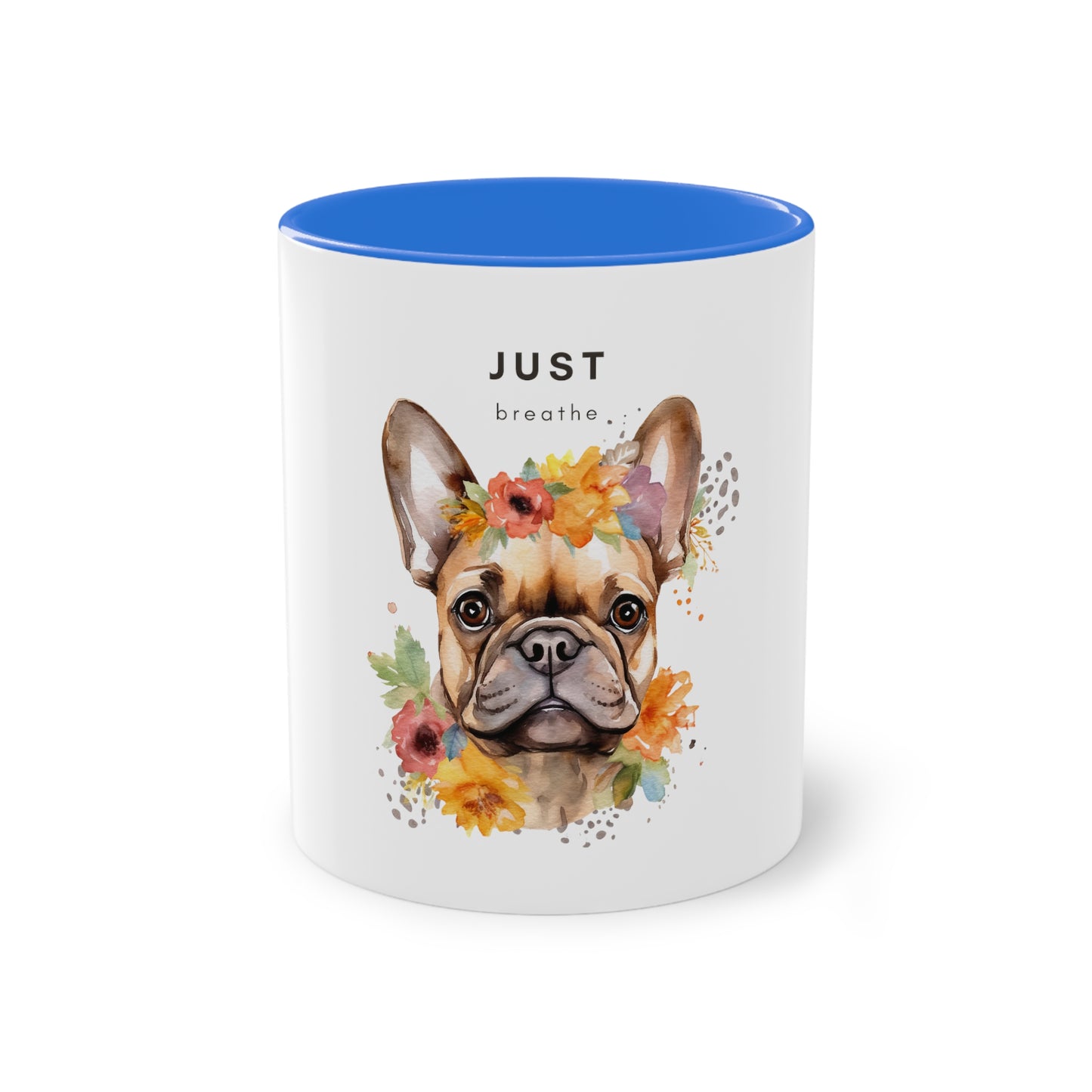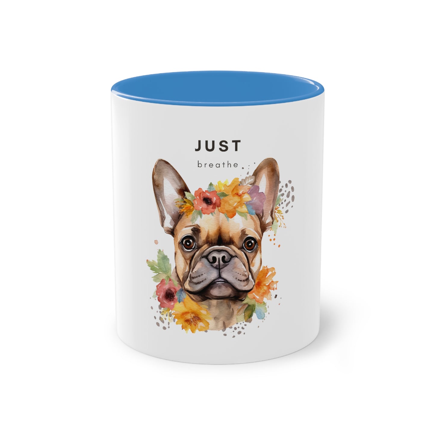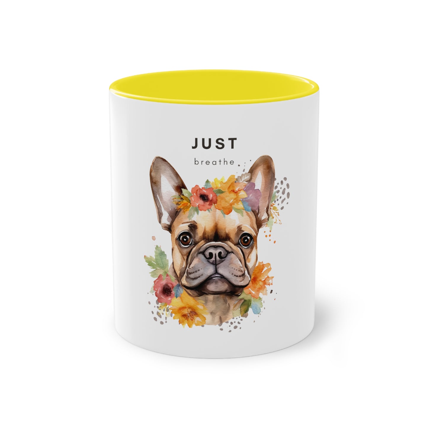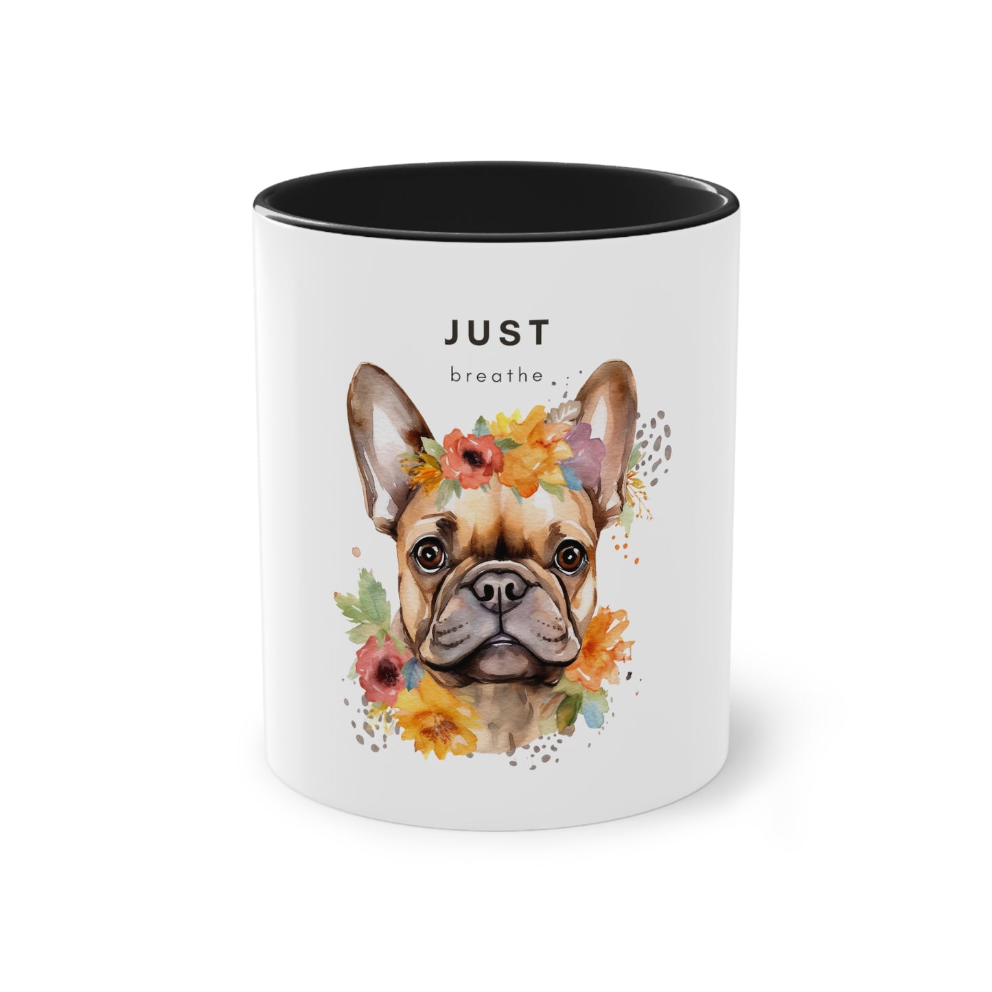 Just Breathe French Bulldog Two-Tone Coffee Mug, 325ml - White