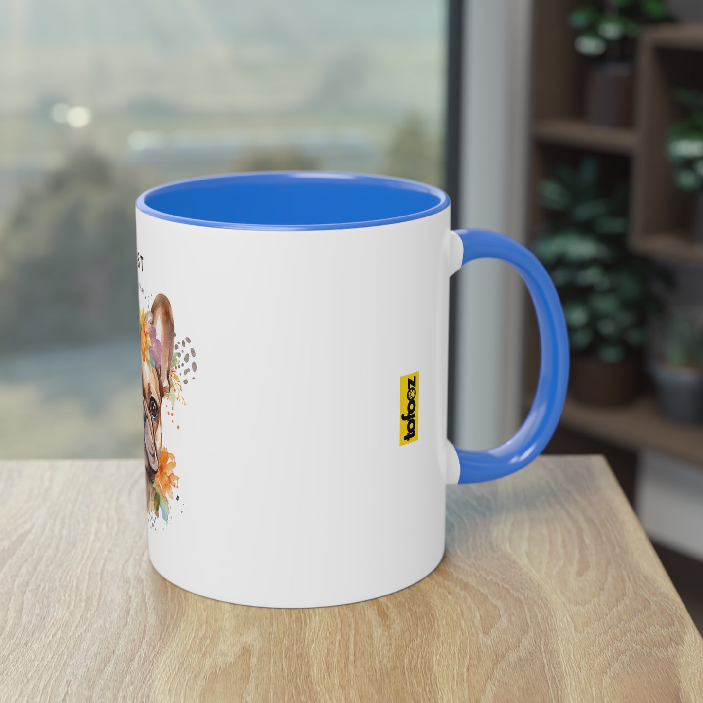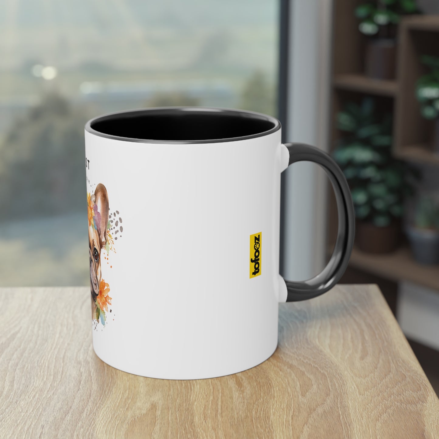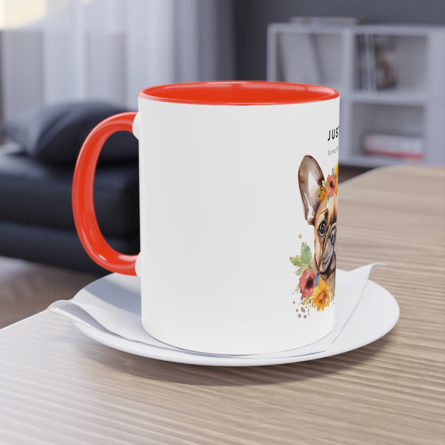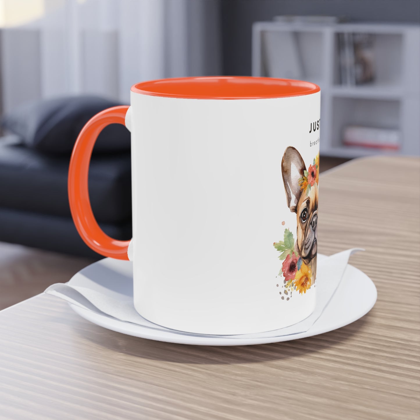 Just Breathe French Bulldog Two-Tone Coffee Mug, 325ml - White