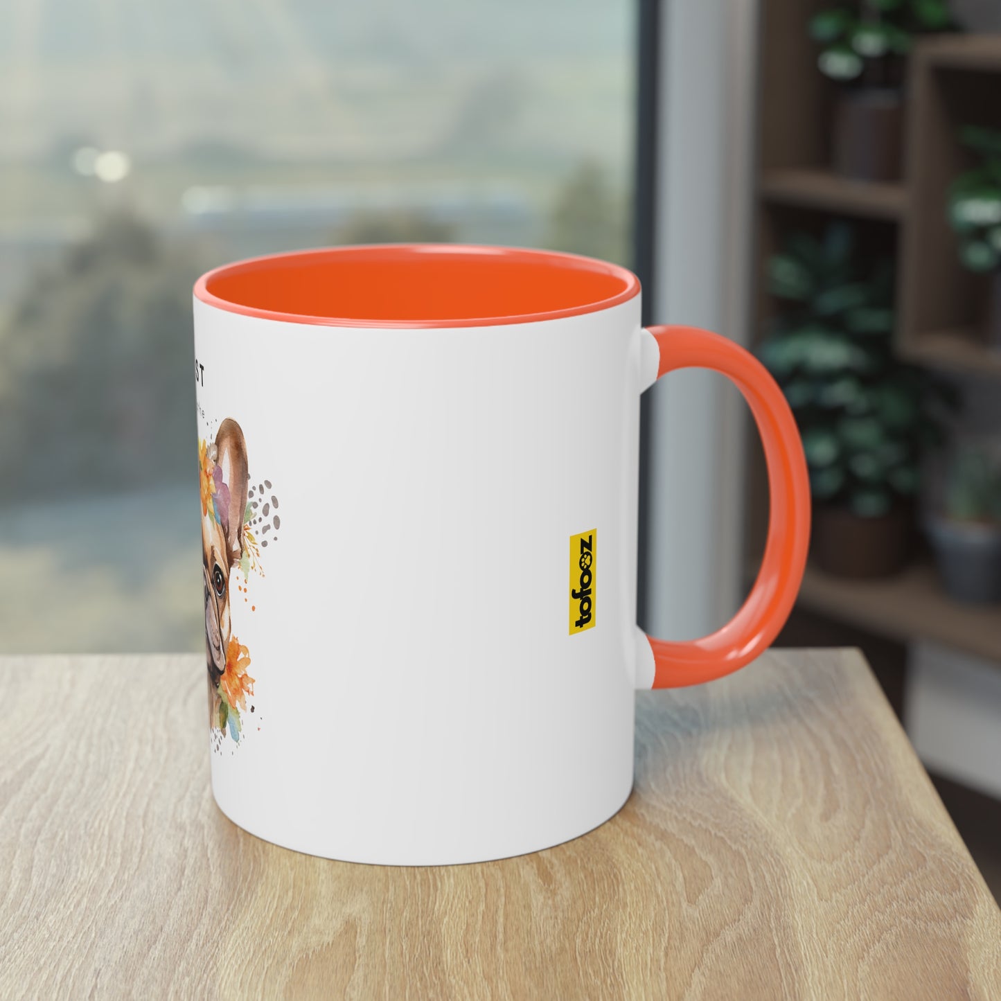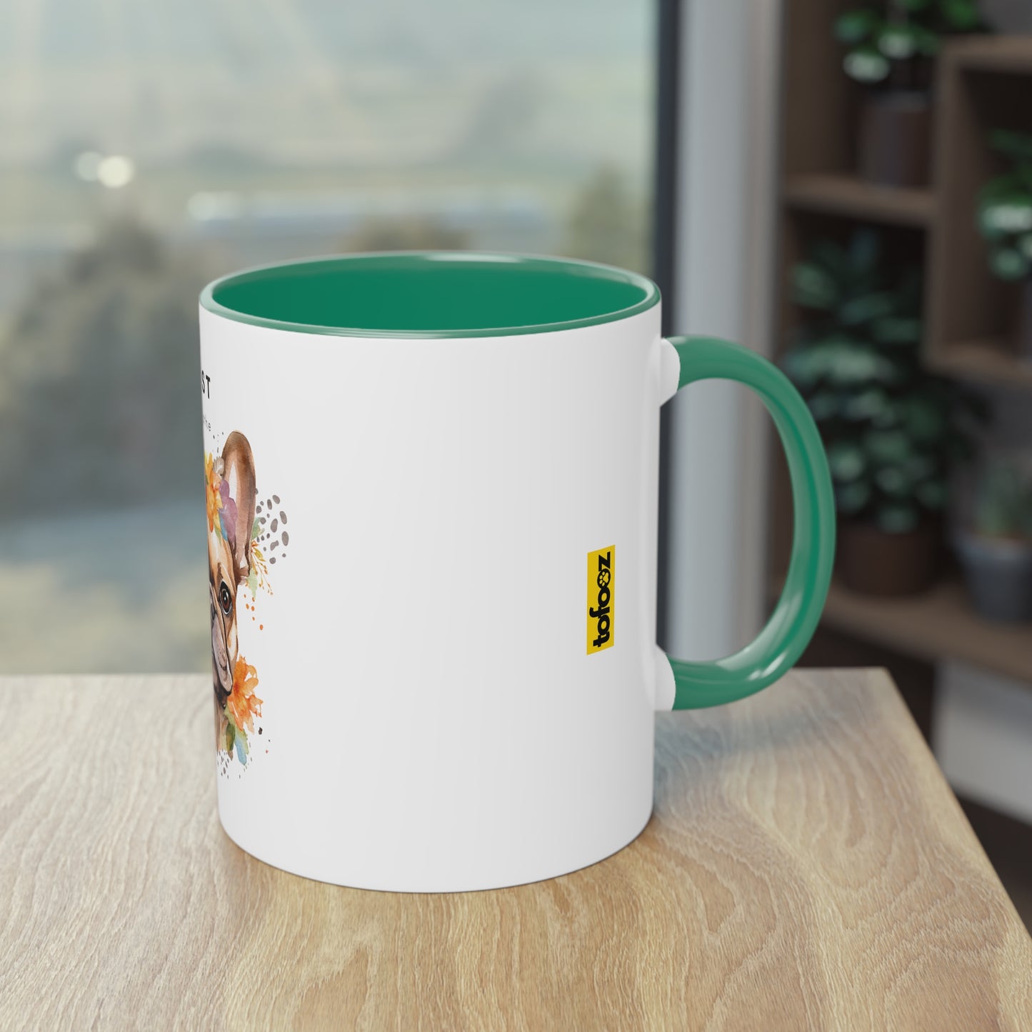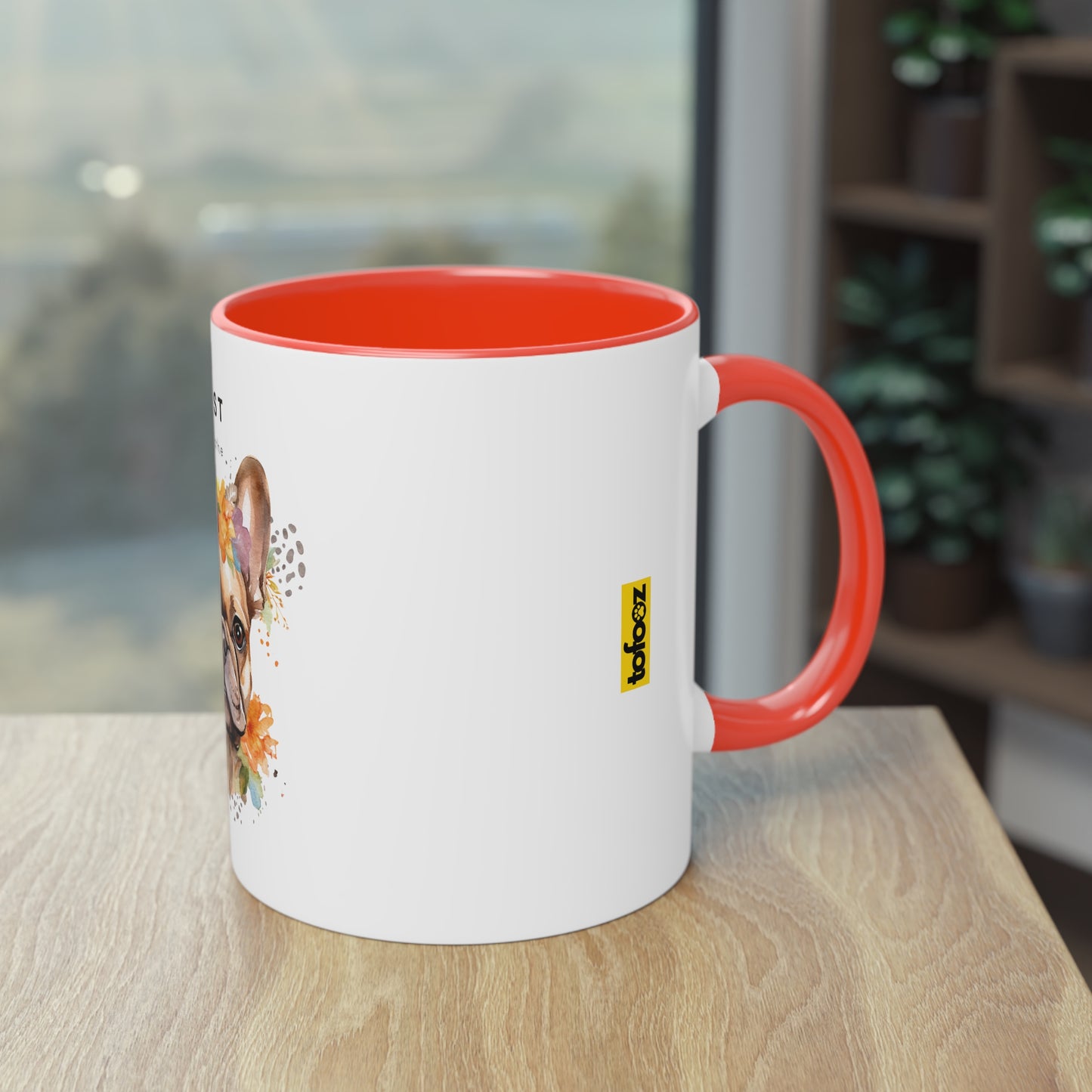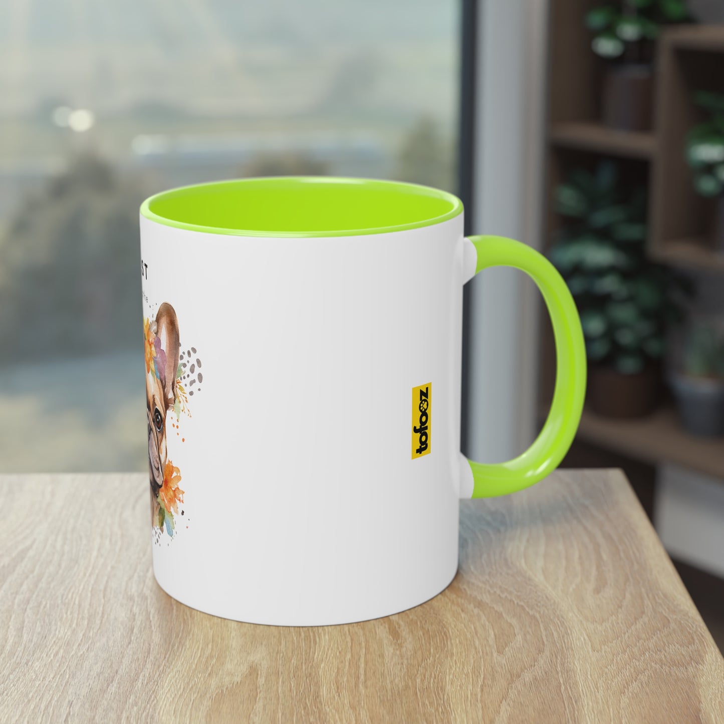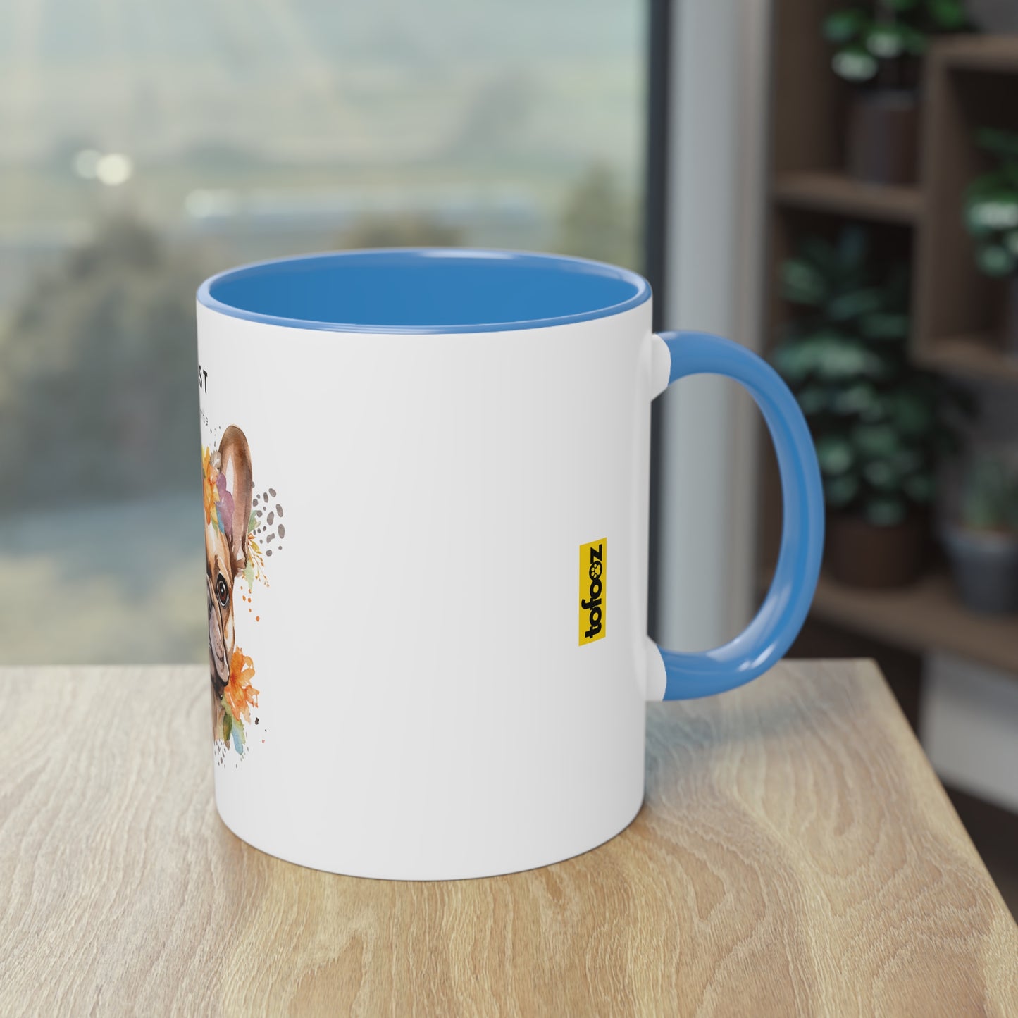 Just Breathe French Bulldog Two-Tone Coffee Mug, 325ml - White