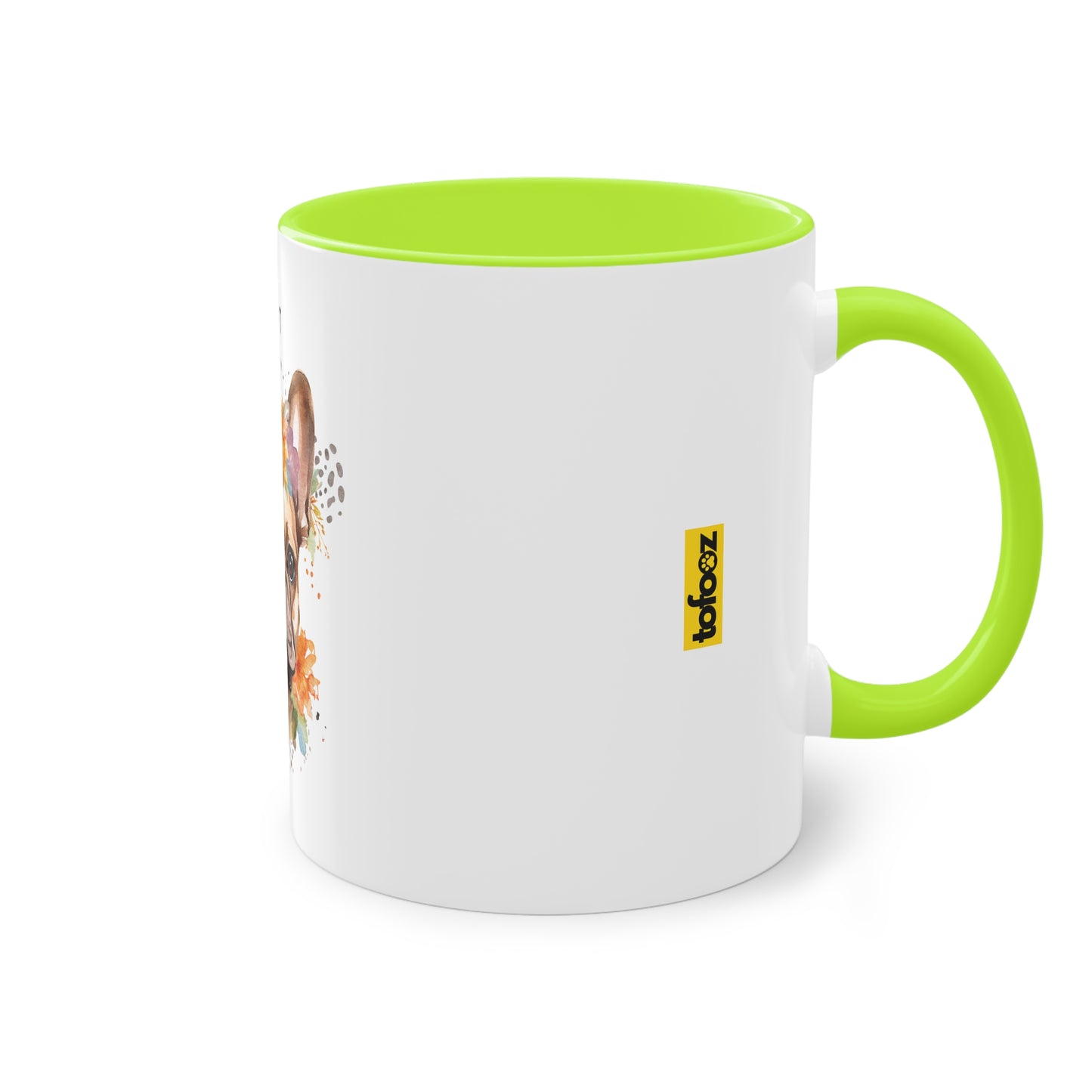 Introducing Tofooz Designed vibrant collection of two-tone coffee mugs, specially designed for dog lovers. With 12 colorful schemes to choose from, each mug boasts an 325ml capacity and features a durable ORCA coating for enduring beauty. The glossy finish adds an extra touch of elegance, while the C-shaped, easy-grip handle ensures a comfortable sipping experience with every use. Make sure your furbaby is represented with every sip!
