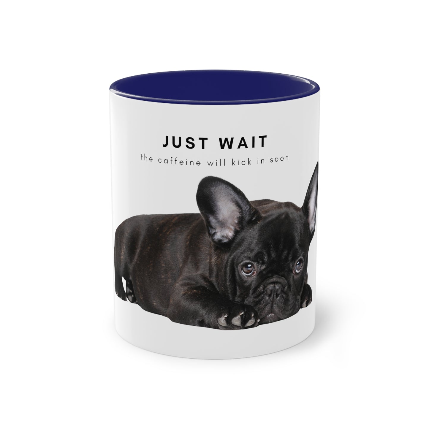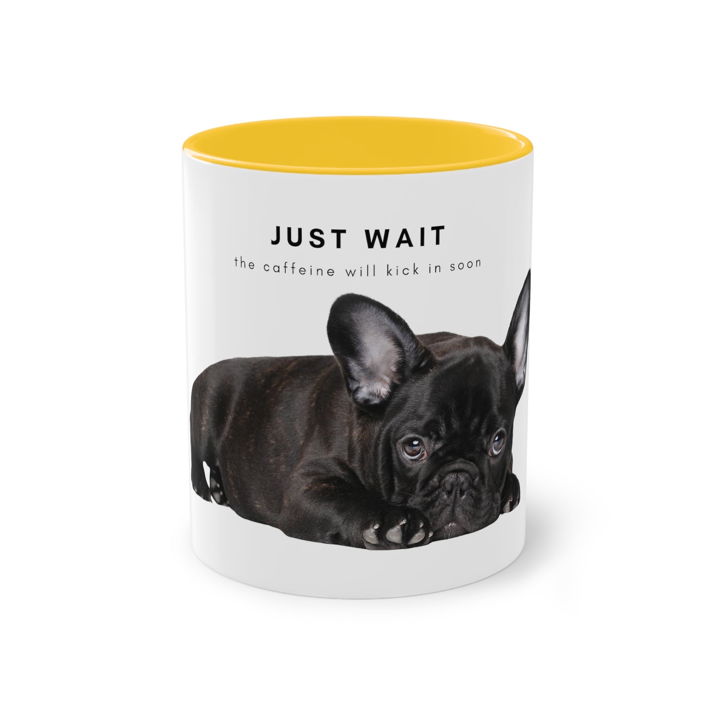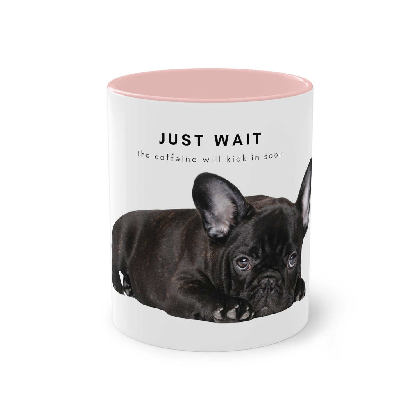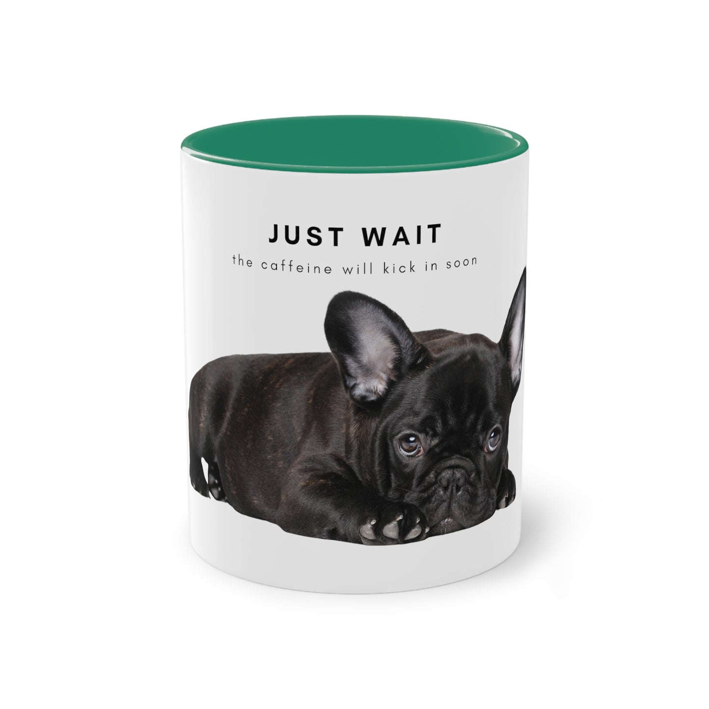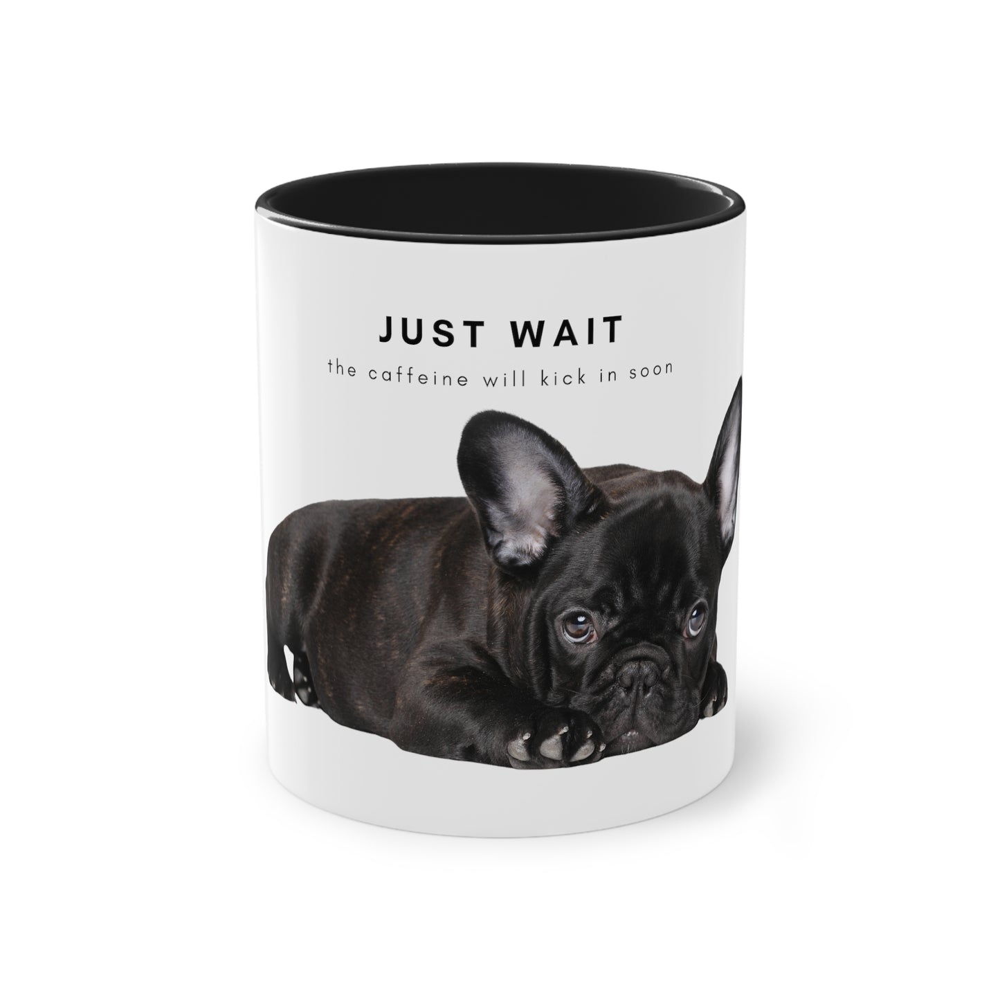 Just Wait Caffeine Black French Bulldog Puppy Two-Tone Coffee Mug, 325ml - White