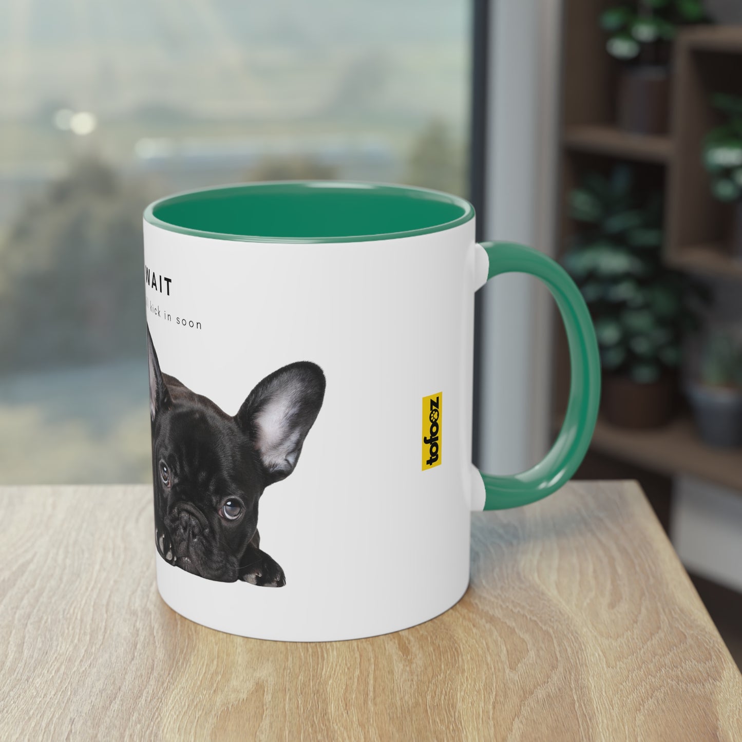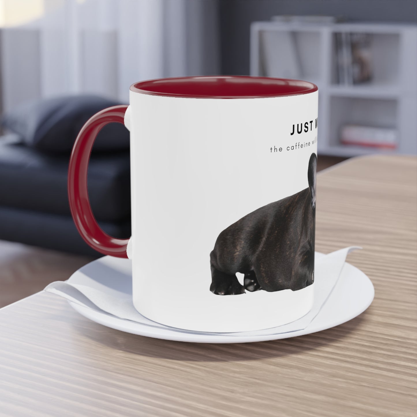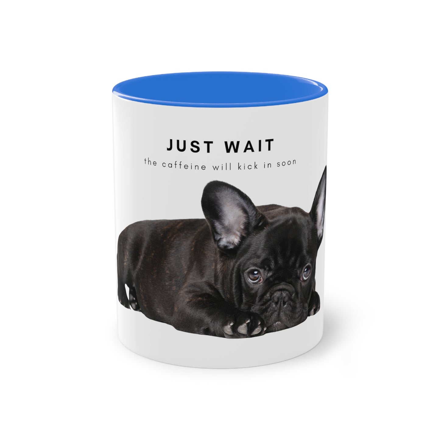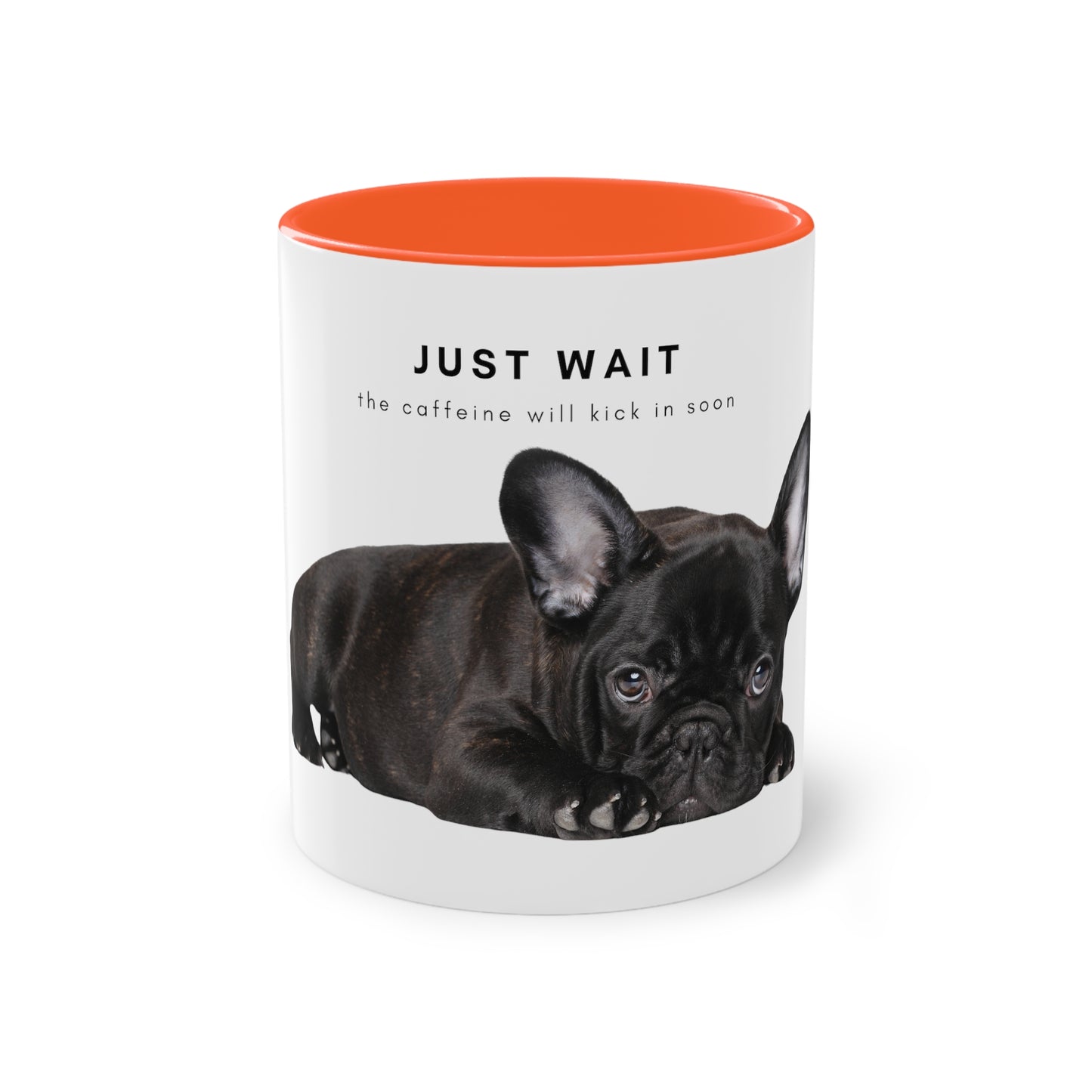 Just Wait Caffeine Black French Bulldog Puppy Two-Tone Coffee Mug, 325ml - White