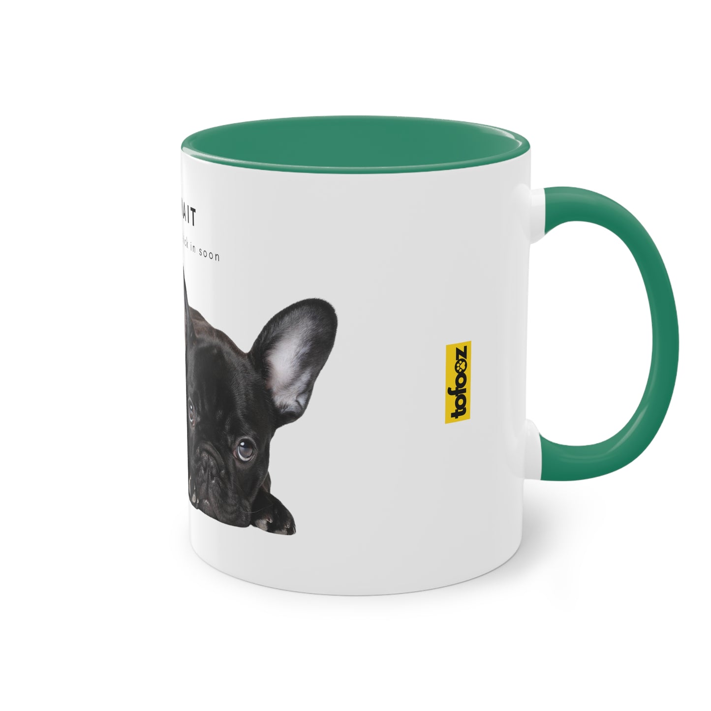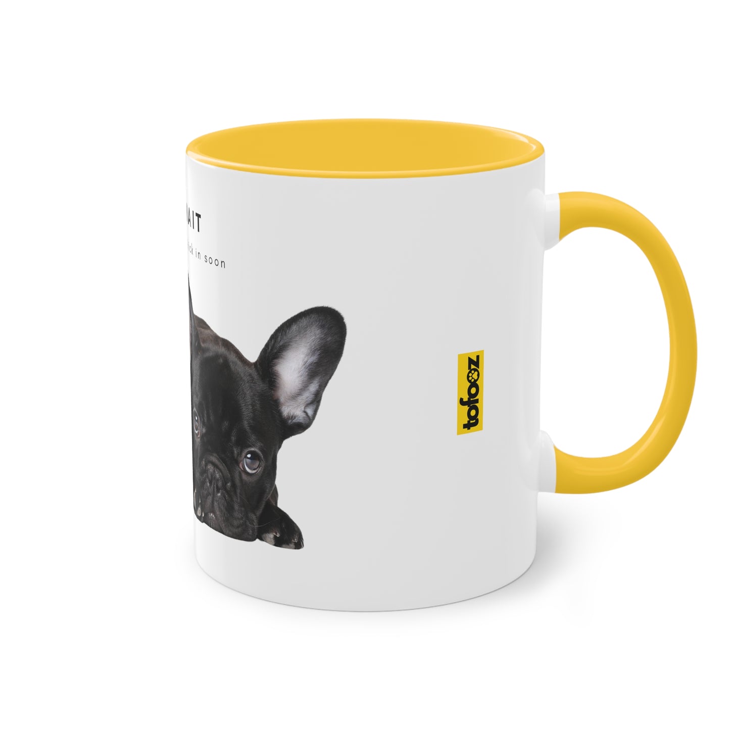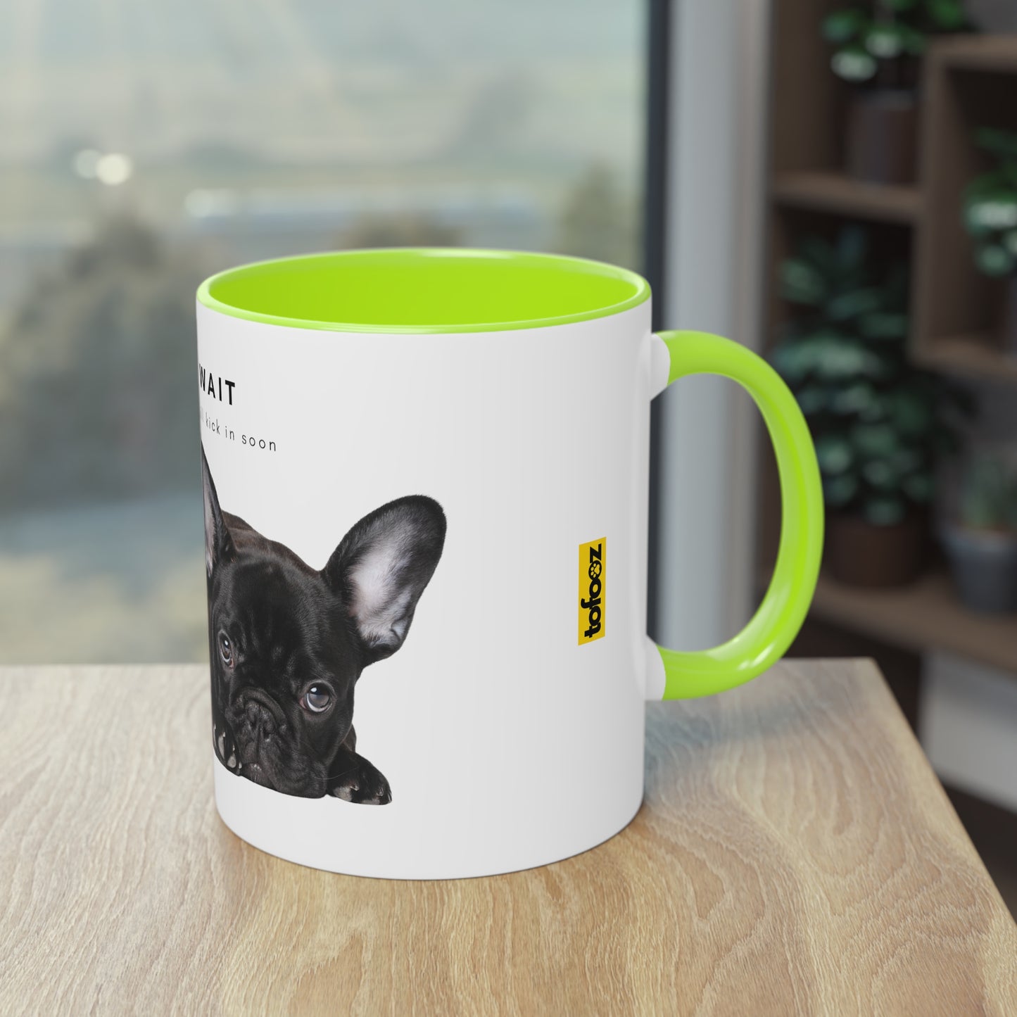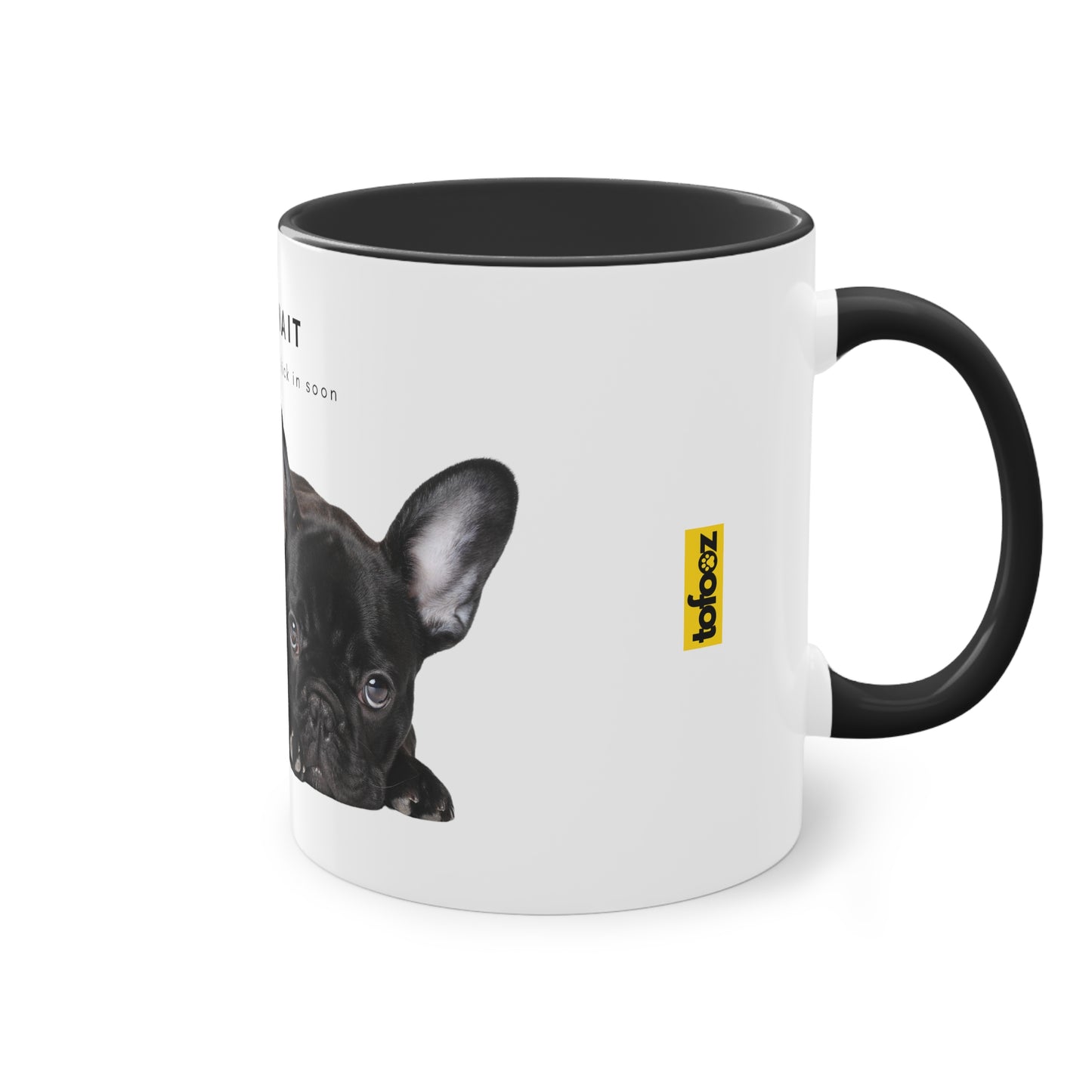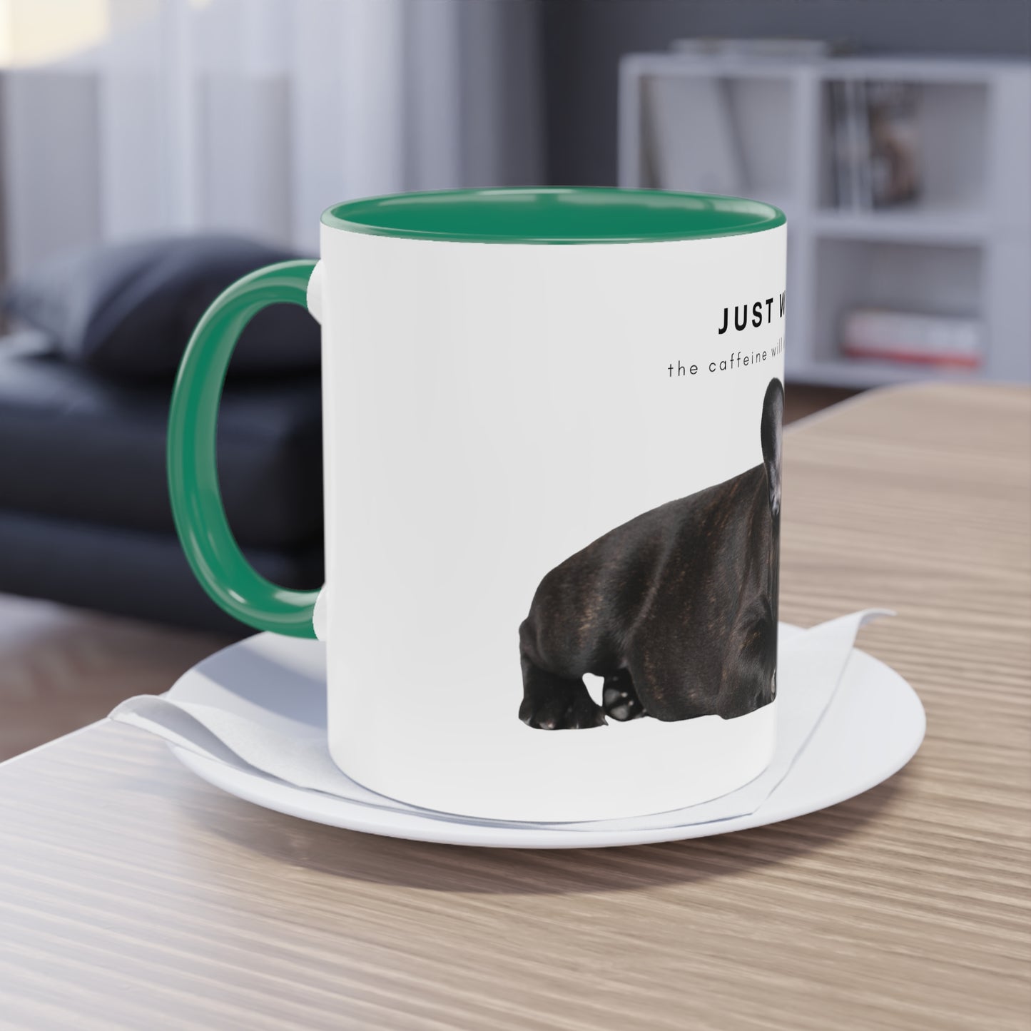 Just Wait Caffeine Black French Bulldog Puppy Two-Tone Coffee Mug, 325ml - White
