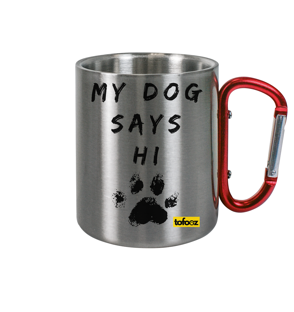 My Dog Says Hi - Stainless Steel Cup With Carabiner