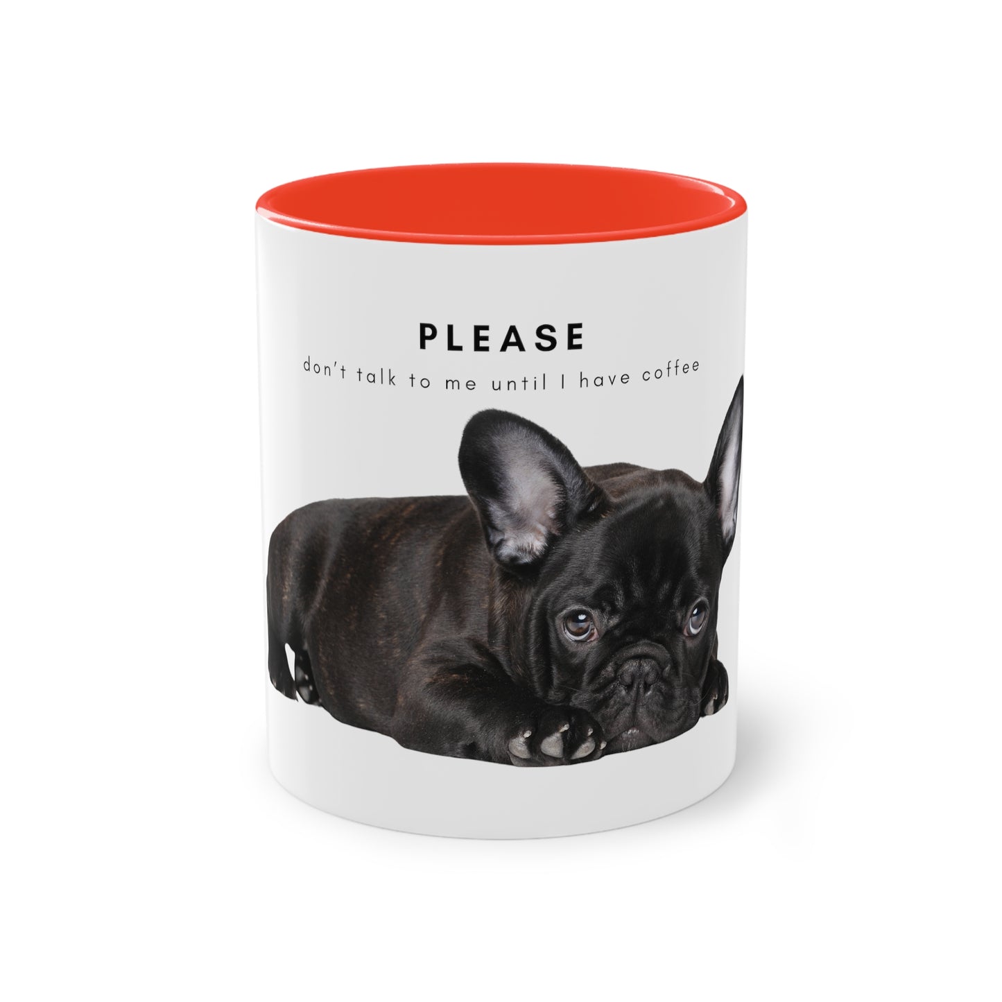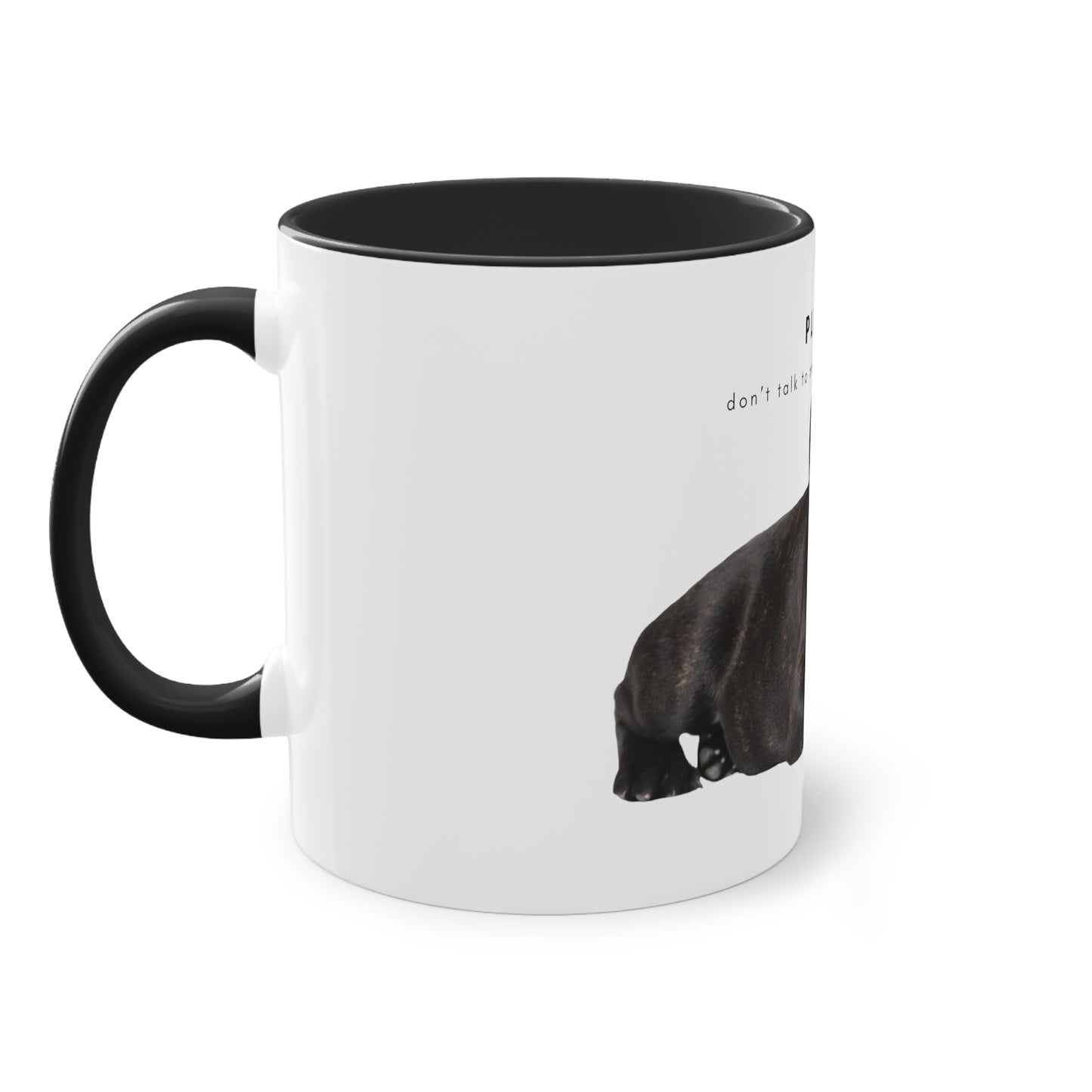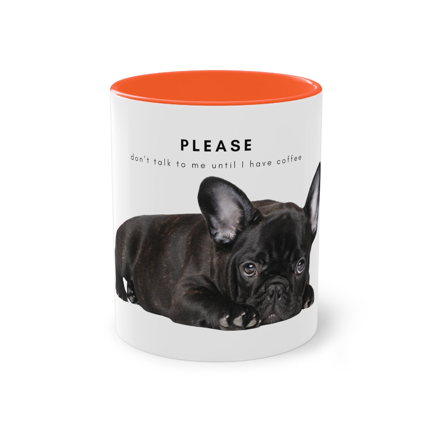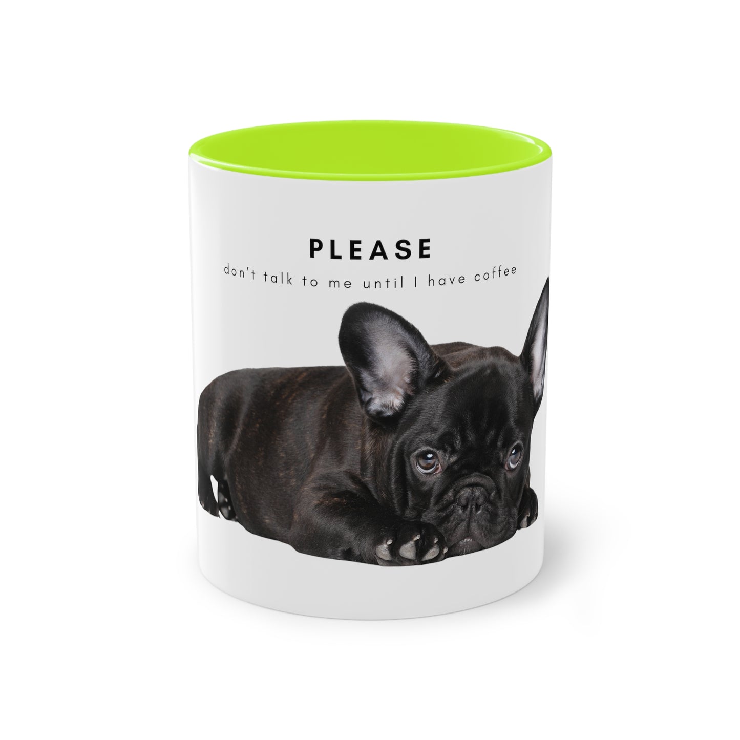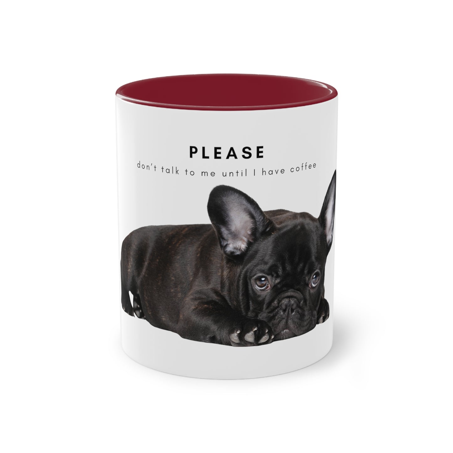 Please Don't Talk Coffee Black French Bulldog Puppy Two-Tone Coffee Mug, 325ml - White