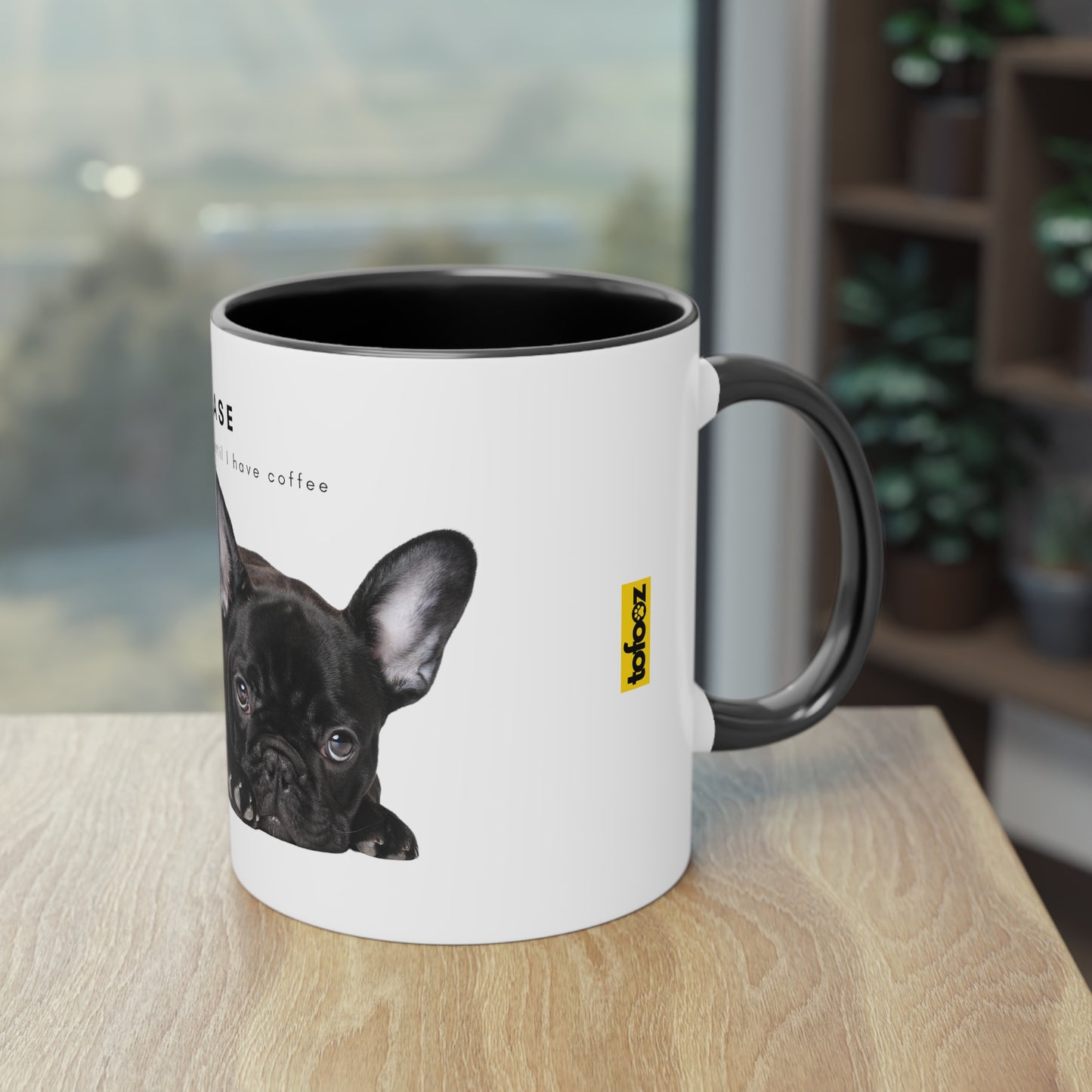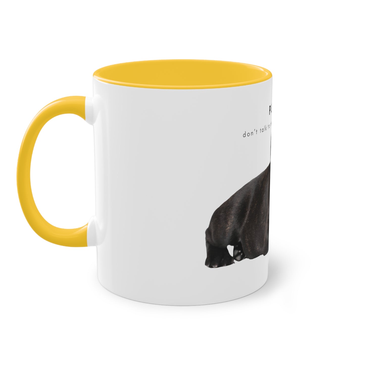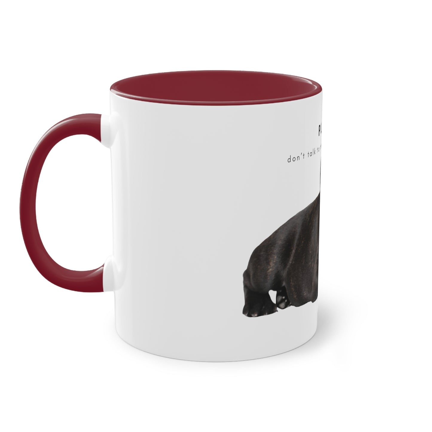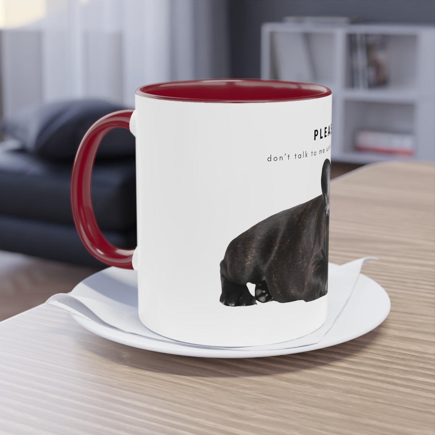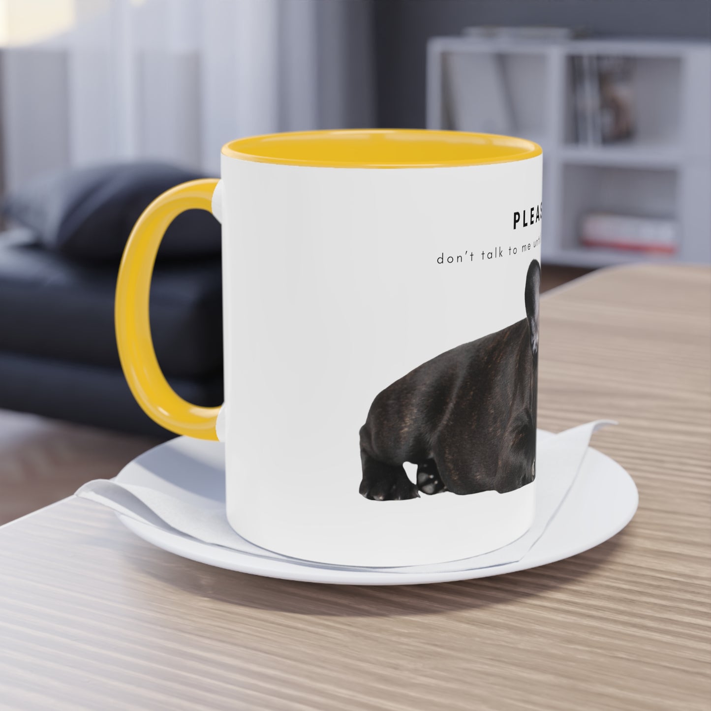 Please Don't Talk Coffee Black French Bulldog Puppy Two-Tone Coffee Mug, 325ml - White