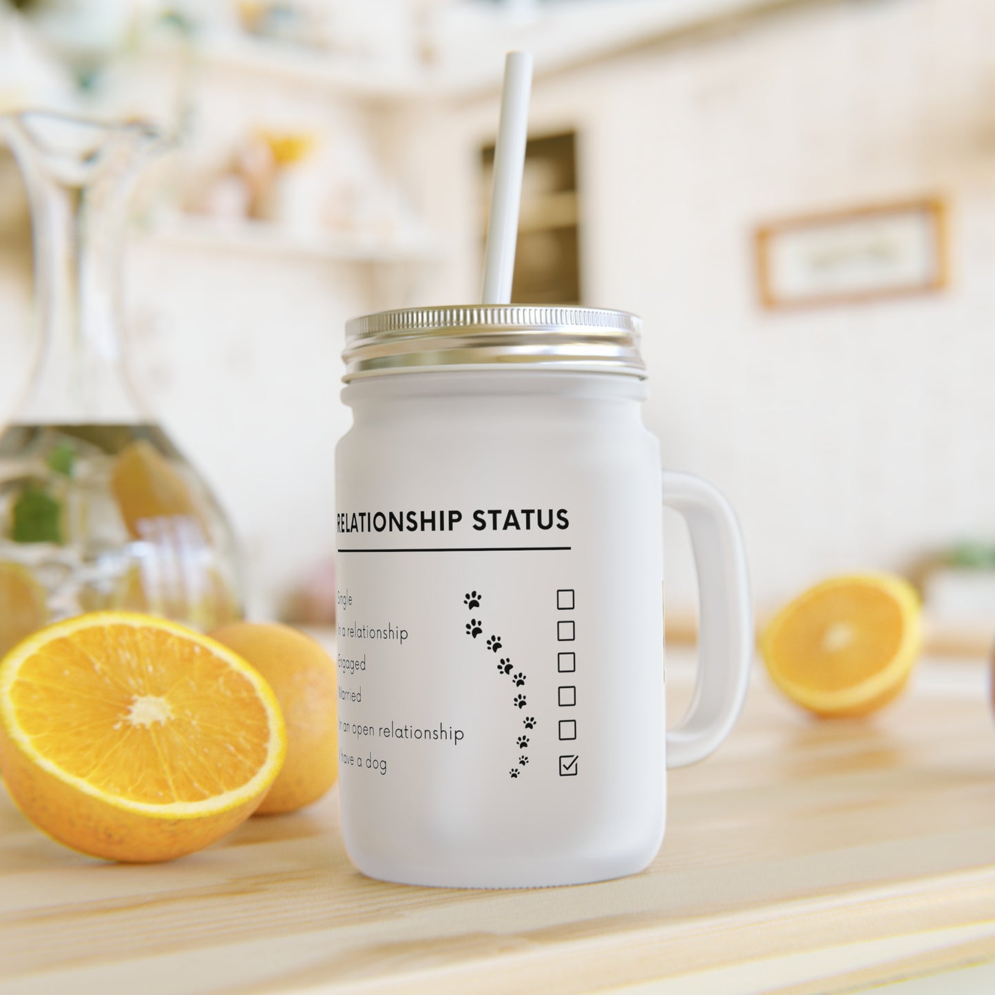 Relationship Status, I Have A Dog - Mason Jar With Straw And Lid, 355ml