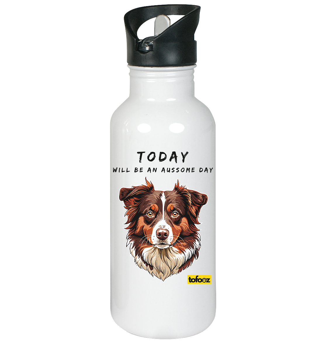 Quench your thirst for adventure with Tofooz's exclusive collection of stainless steel water bottles, featuring the spirited slogan "Today Will Be An Aussome Day" paired with the adorable graphic of a Red Tri Australian Shepherd. Embrace the durability and eco-friendliness of stainless steel while infusing your routine with boundless joy and positivity. Let the infectious energy of this beloved breed uplift your spirits with every sip, making every moment a celebration of life and love. Shop now and make hydration an Aussome adventure!