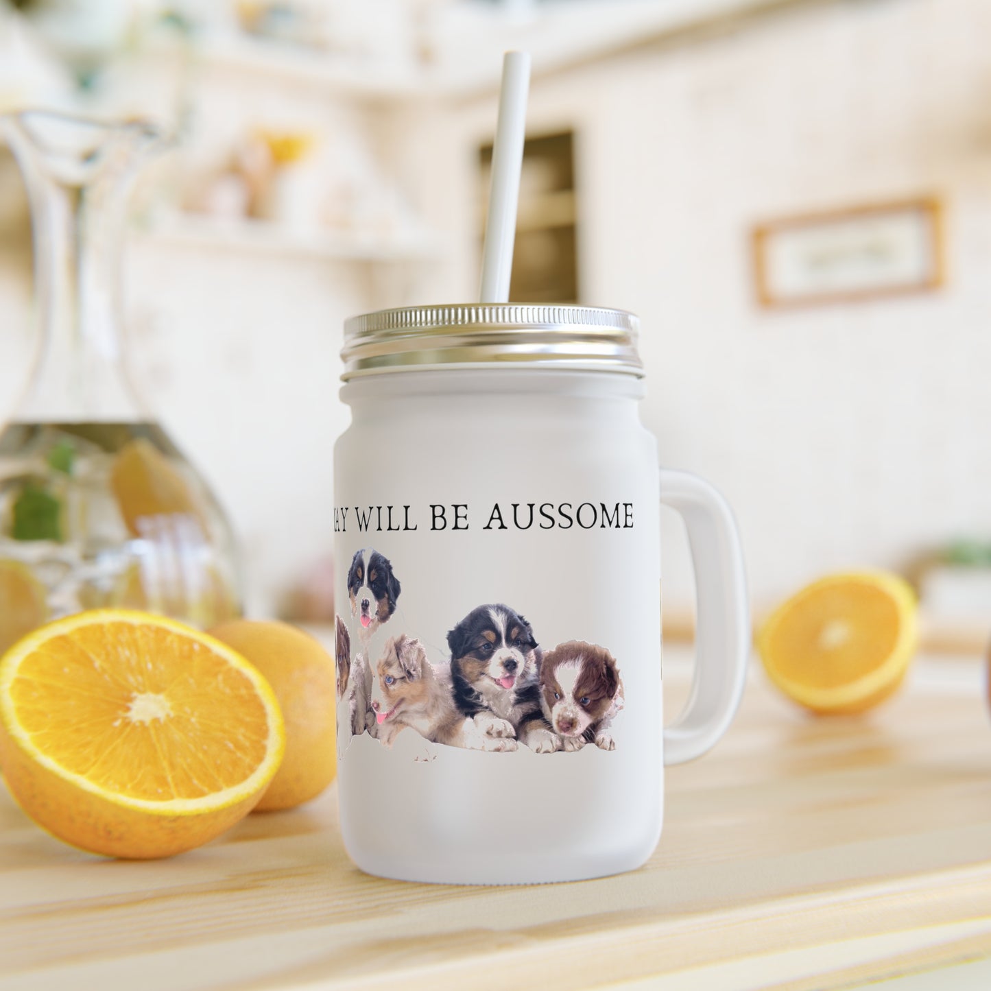 Today Will Be Aussome Aussie Puppies - Mason Jar With Straw And Lid, 355ml